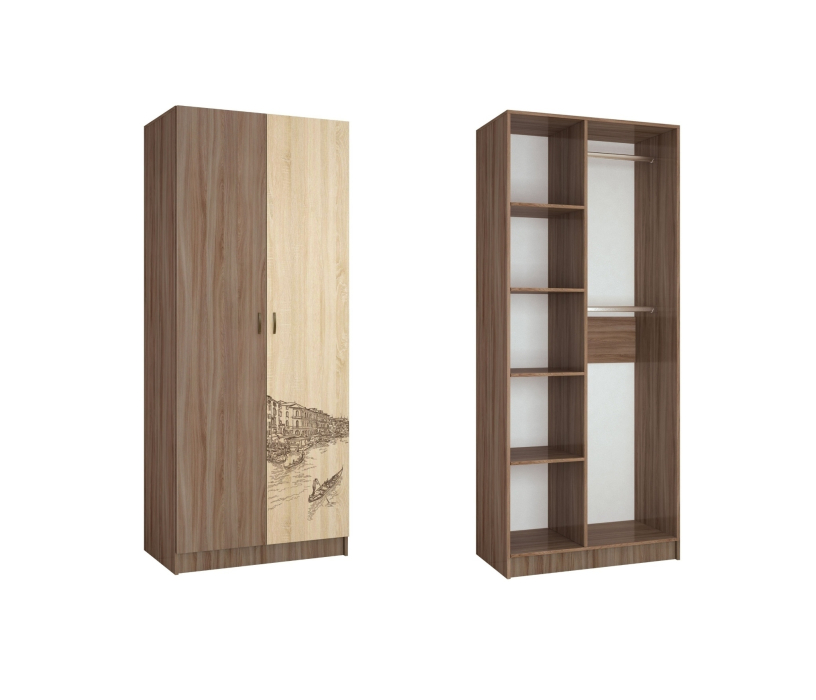 - Классические цвета исполнения Ясень шимо/Дуб Сонома в сочетании с дизайнерскими изображениями городов мира, нанесенными на фасады методом цветной фотопечати.