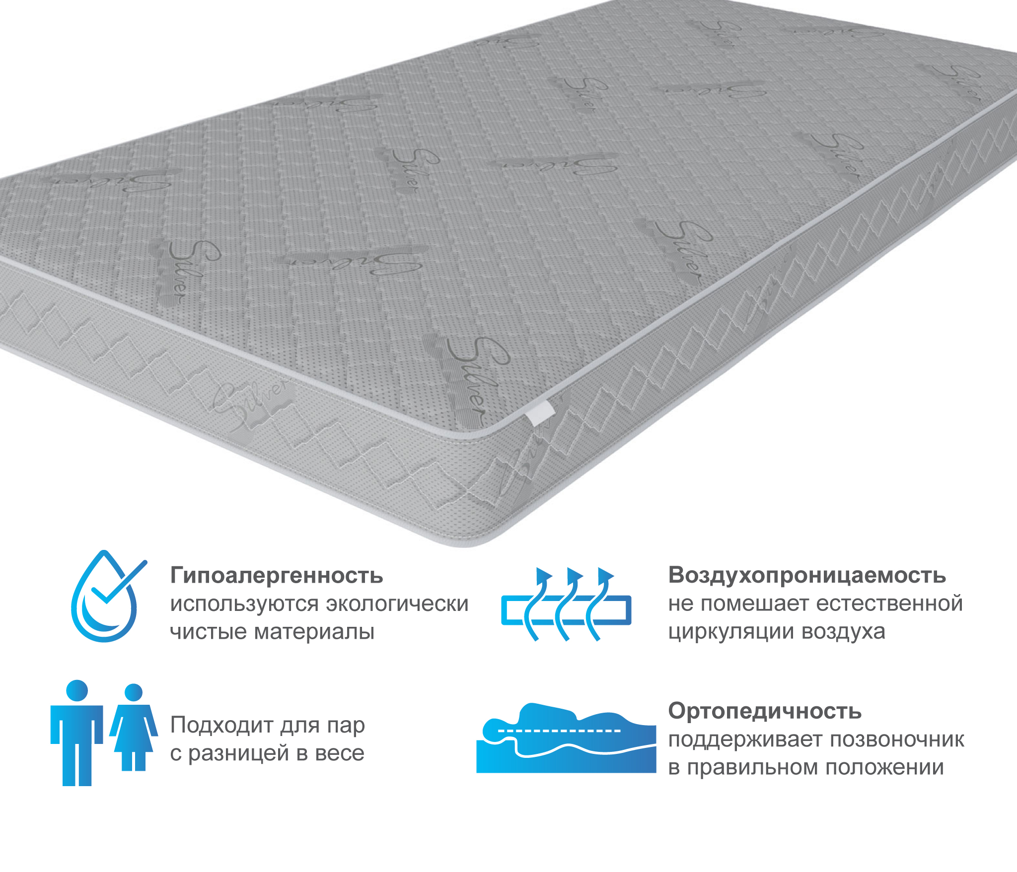 Каждый элемент наполнения матраса по недорогой цене направлен на то, чтобы сделать отдых пользователя здоровым и максимально приятным. Состав включает: