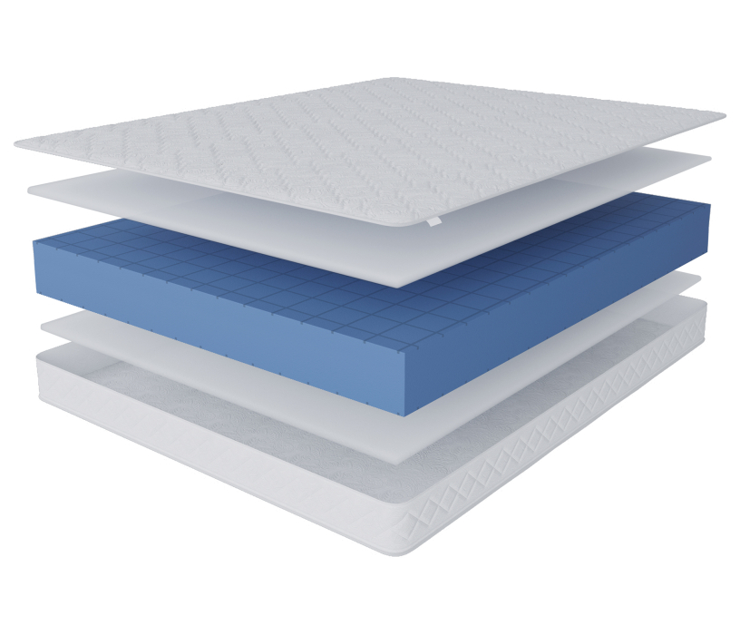 Первый и третий слои состоят из гипоаллергенной пены с прорезями ST Foam, которая создает комфорт и снимает напряжение со спины во время сна. Основа матраса - пена повышенной прочности HD Foam, принимает на себя основную нагрузку.