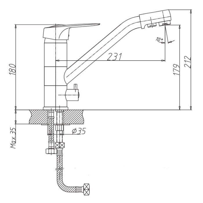 Тип смесителя: Однозахватный, с подключением к фильтру питьевой воды
