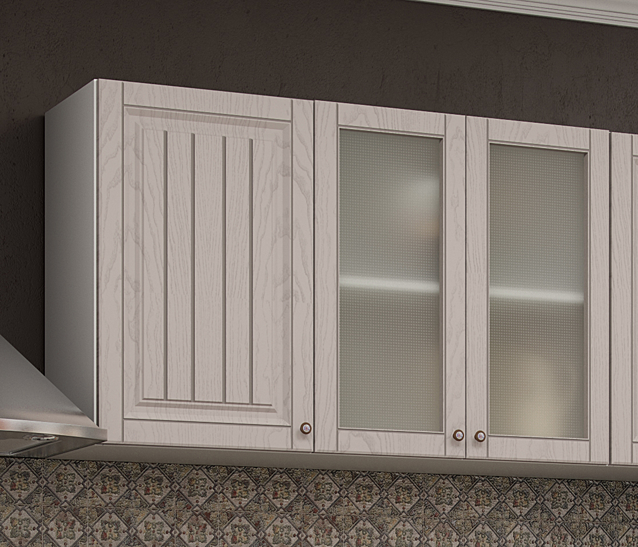 два верхних шкафа - общая ширина 1000мм (400-глухой , 600-со стеклом) и на 500мм. Высота 626мм. Глубина 270 мм.