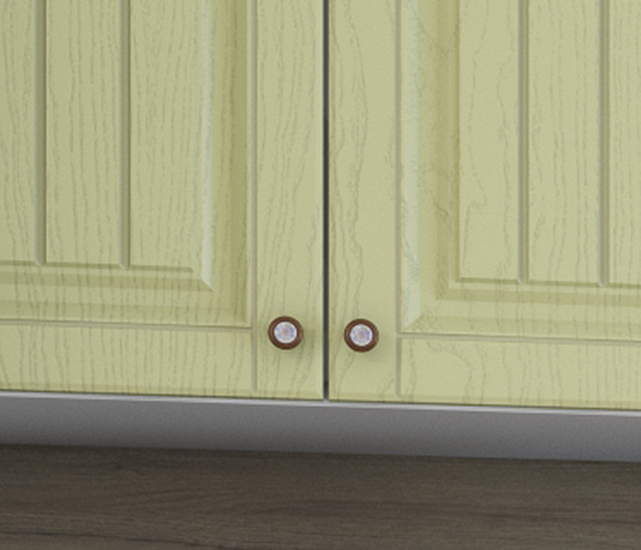 В реальности кухня оказалась лучше, чем я ожидала: фасады из МДФ с эффектом окрашивания эмалью, и цвет очень приятный, ближе к светлому оливковому, желтизны как у фисташки нет. К Провансу очень подошла. Заказала 2-х метровую, и уверена была, судя по фото, что она трехсекционная. Оказалось, что это два шкафа: 120 и 80 см. Такие же наверху. Поэтому на угол поставить не получилось. Но поскольку очень подошла по стилю, решила оставить. Столешница только на стол 120 см. Так что мойка только накладная. Дозаказывала другую единую столешницу и врезала мойку. Пишу так подробно, потому что сама столкнулась с этими проблемами. Глубина шкафов 40(!) см, так что сзади кухни 20 см неиспользованного пространства. Сборку заказывала на фабрике, привезли битые стекла, сам сборщик открыл рекламацию. Если собираете сами, с рекламацией будут проблемы. Стекла заменили через неделю. Сборка средняя, не без огрехов, но в целом норм. Общее впечатление от кухни хорошее, звезды сняла за указанные недостатки. Сушки для посуды нет, полки в этом шкафу тоже.
