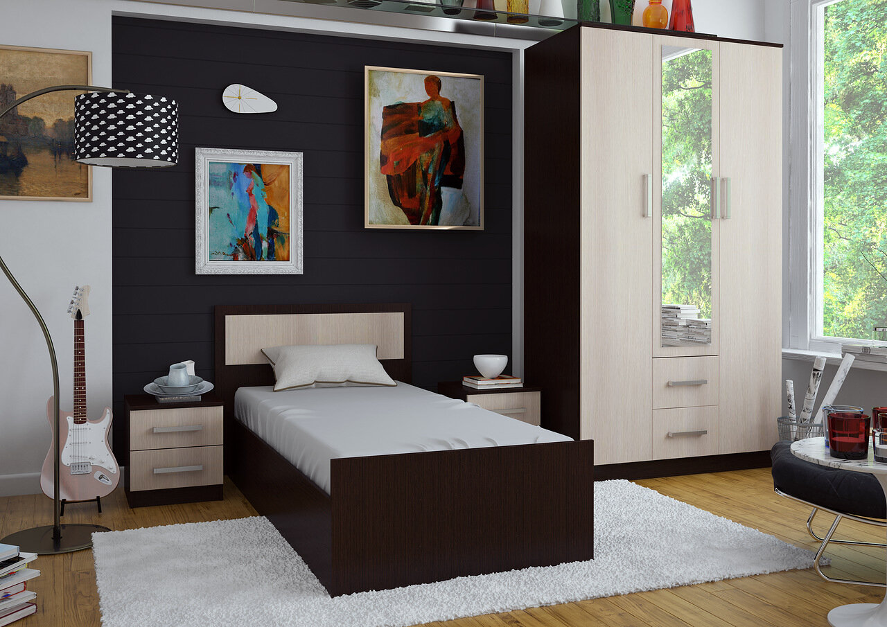 Шкаф выполнен в комбинации цветов венге и лоредо.