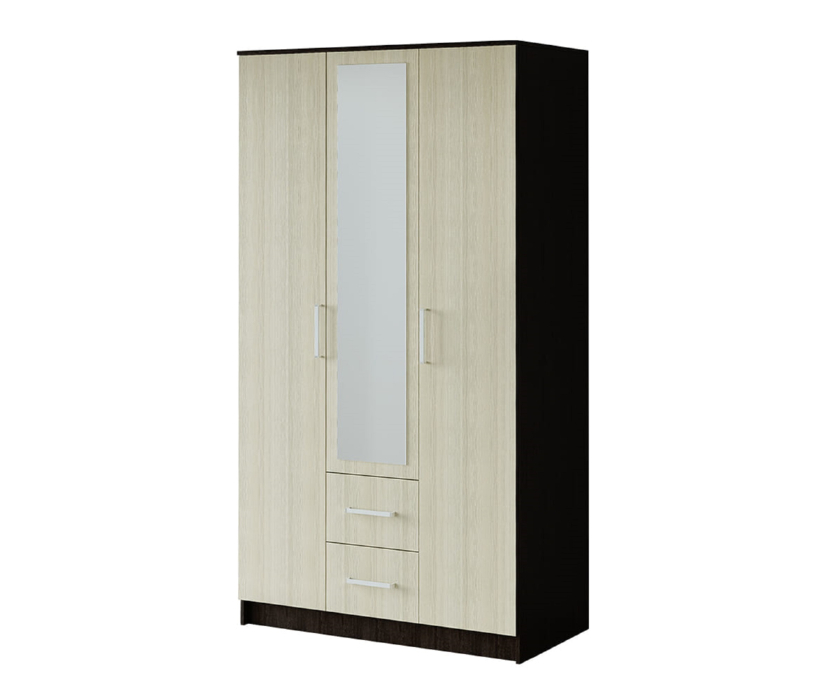 Центральная створка у модели – зеркальная, под ней находятся два выкатных ящика.