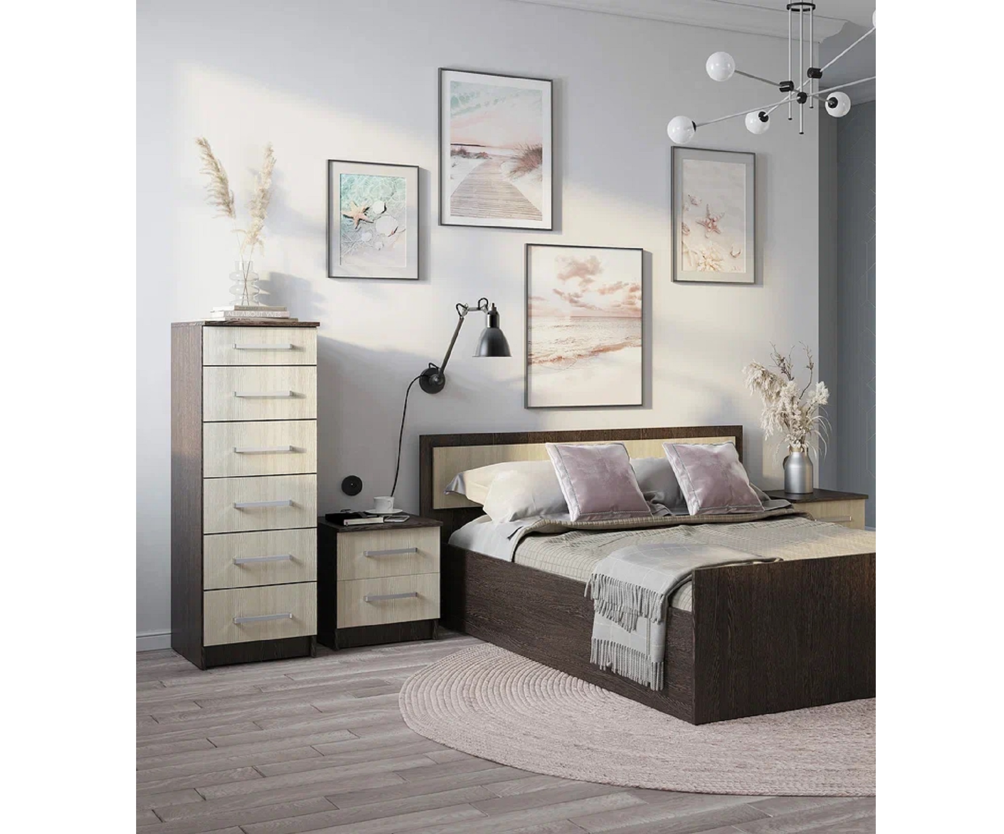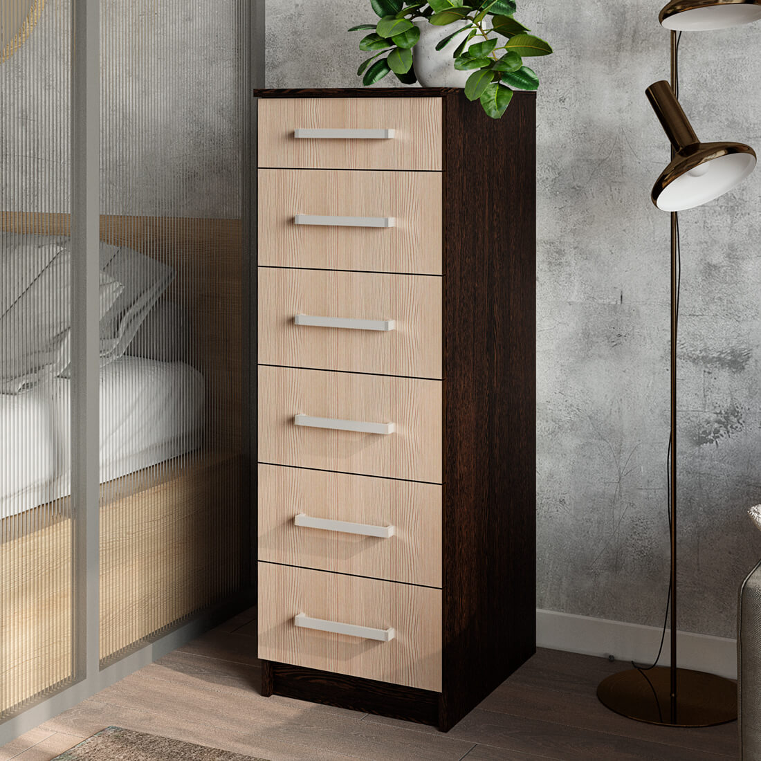 Комод Фиеста выполнен из ЛДСП высокого качества в контрастных цветах венеге и лоредо.