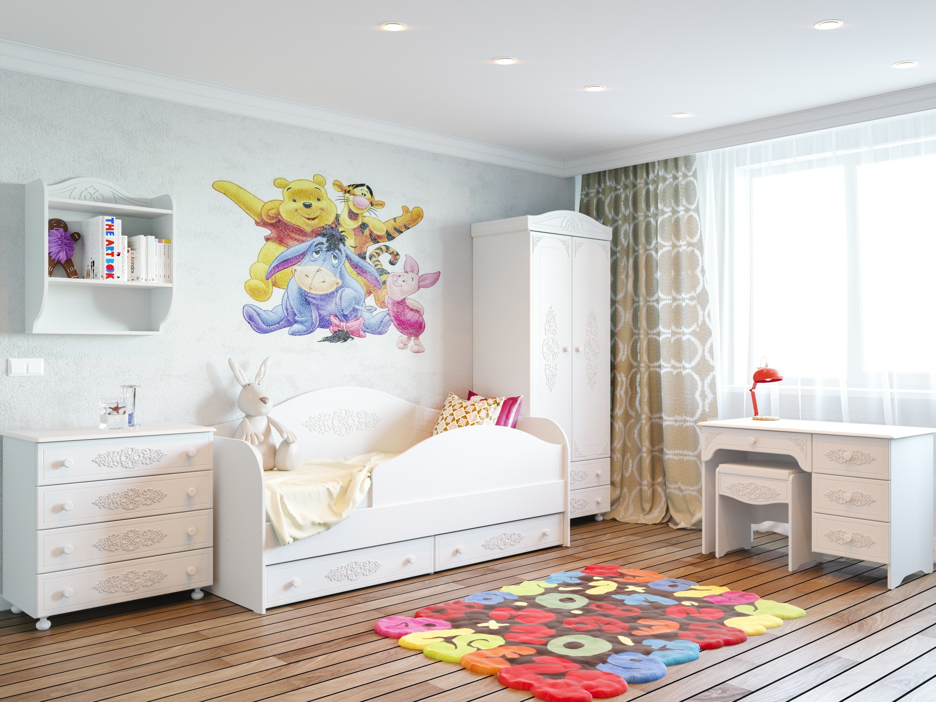 Платяной шкаф с двумя дверцами и двумя выдвижными ящиками. Высота боковых стенок каждого ящика 130 мм, ширина ящика 708 мм, глубина 450 мм. Ящики установлены на телескопических направляющих полного выдвижения. В верхней части шкафа расположена полка высотой 260 мм. Под полкой расположена штанга для плечиков.