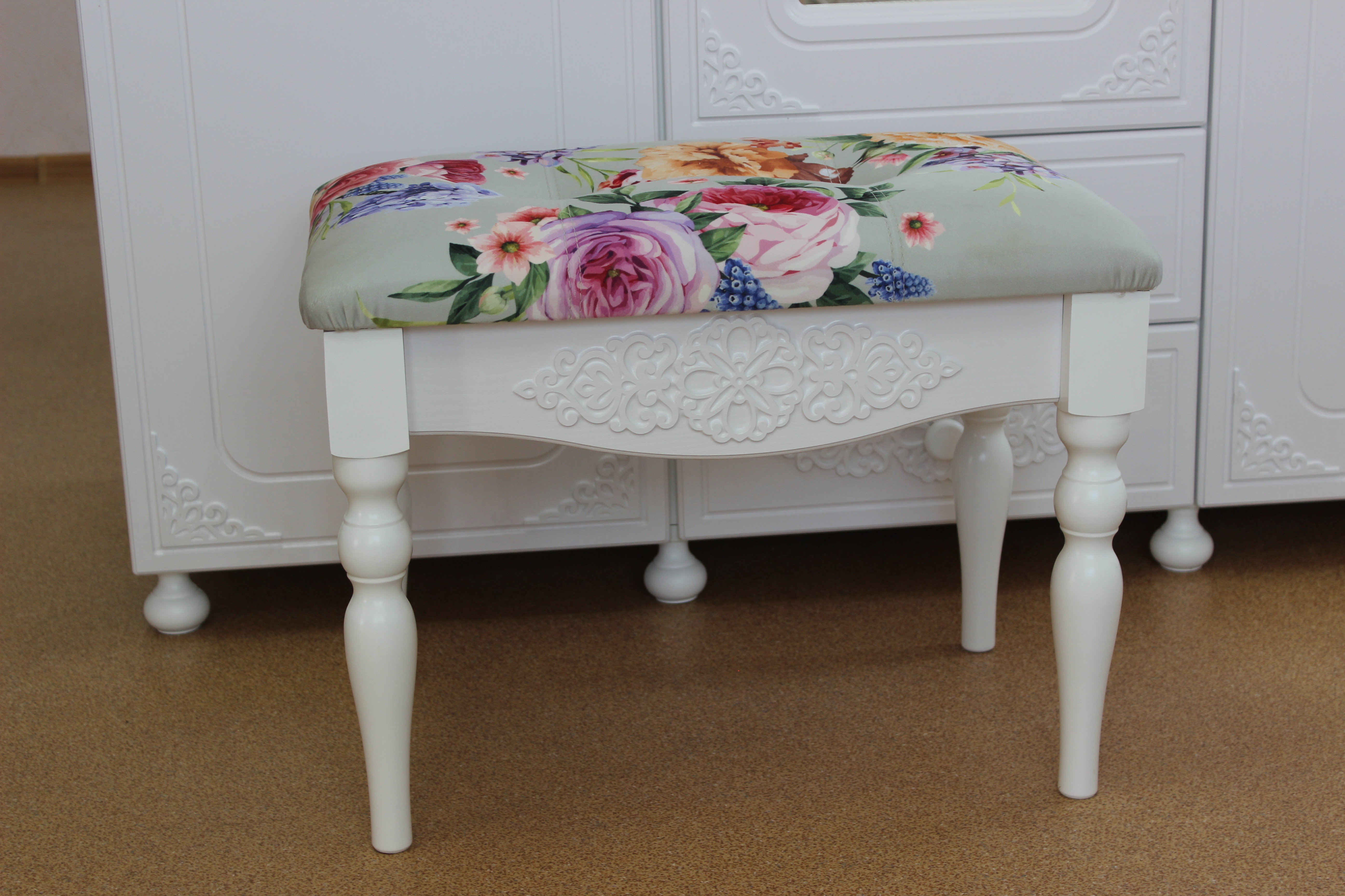 «Ассоль» - мягкий мерцающий глянец и эксклюзивный узор, повторяющийся на фасадах всех модулей идеален для создания нежного уютного интерьера спальни, гостиной, детской, прихожей. Небольшая мягкая банкетка. Сиденье 600 мм * 400 мм.