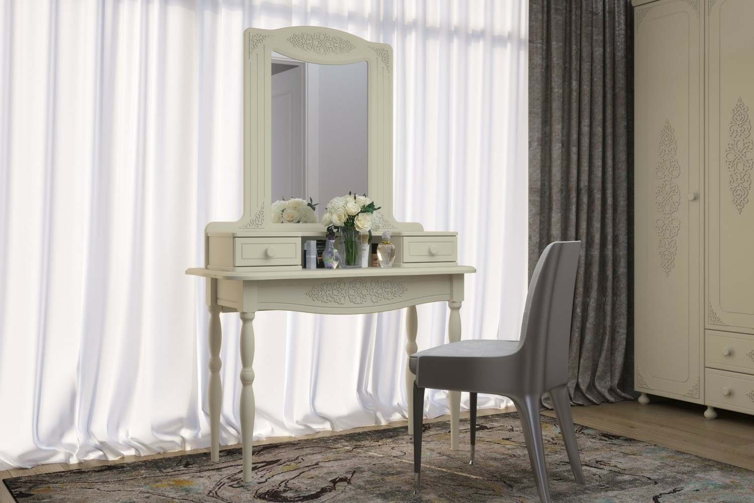 «Ассоль» - мягкий мерцающий глянец и эксклюзивный узор, повторяющийся на фасадах всех модулей идеален для создания нежного уютного интерьера спальни, гостиной, детской, прихожей.