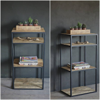Каркас: профильная труба 20х20 мм.Прочное полимерно-порошковое покрытие черного, белого и серого цвета Дерево: массив сосны 20 мм, покрытое специальным маслом для мебели, цвета на выбор: бесцветный, белый, серый, махагон, орех, морёный дуб, черный, клён, черный графит, голубой графит, темное золото графит, золото графит.