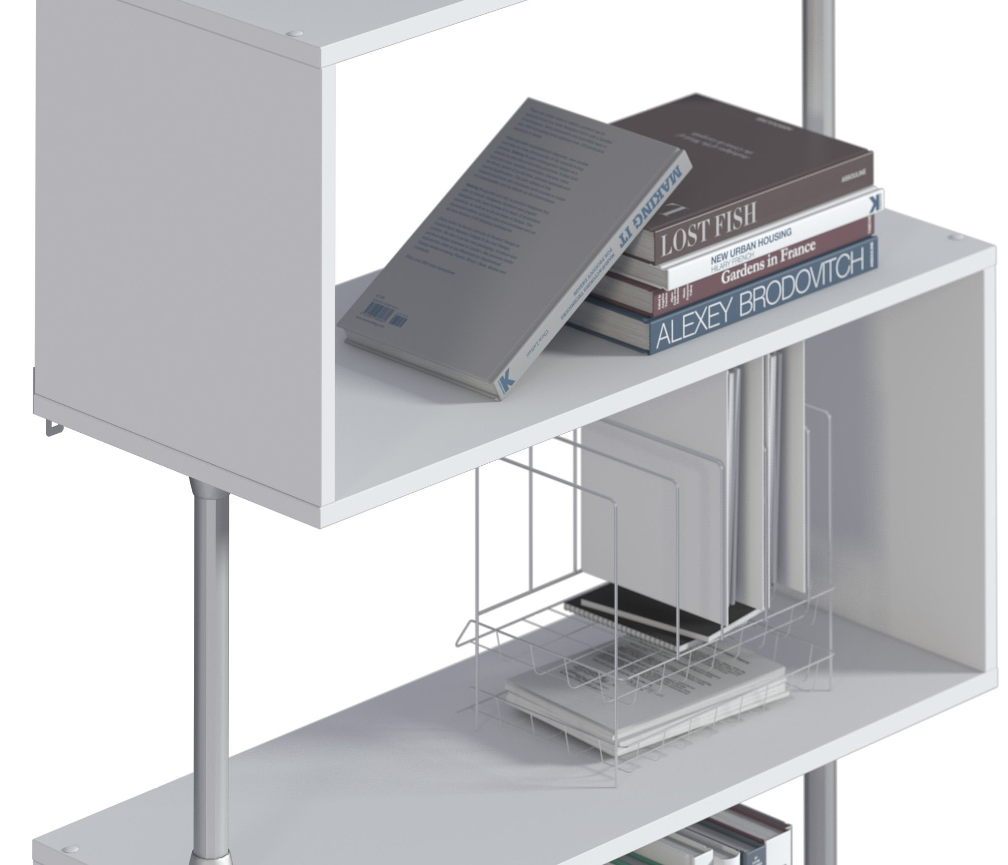 Производится стеллаж Кито из современного и прочного КДСП. Стеллаж оснащен протекторами или «лапками», которые не позволяют повредить пол.