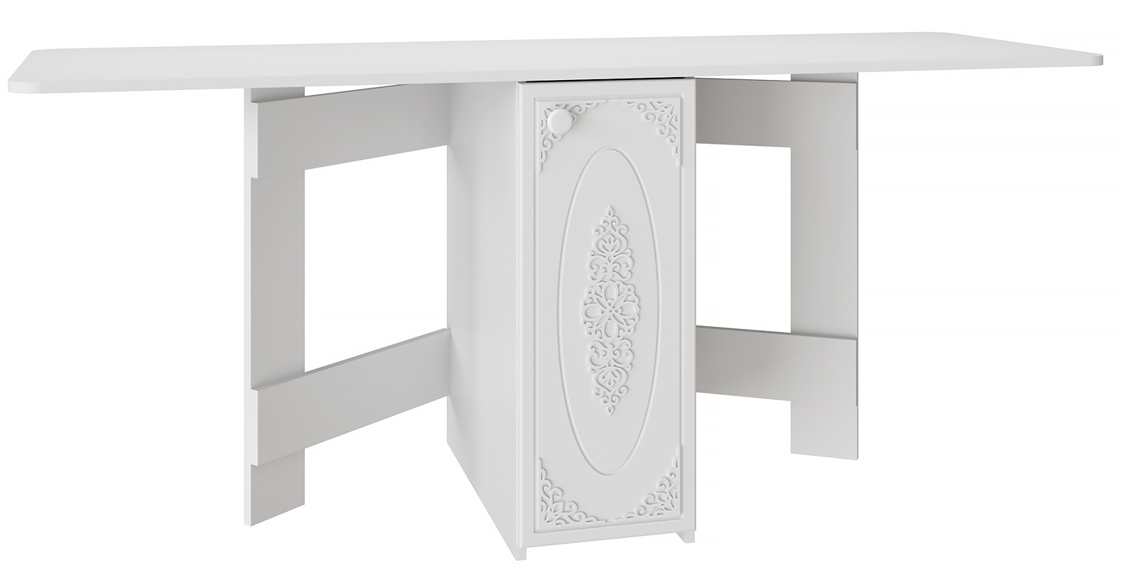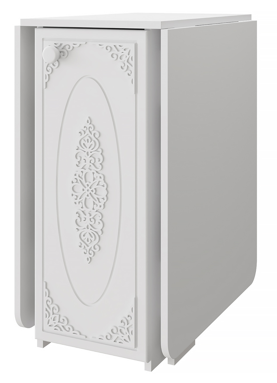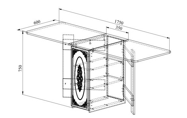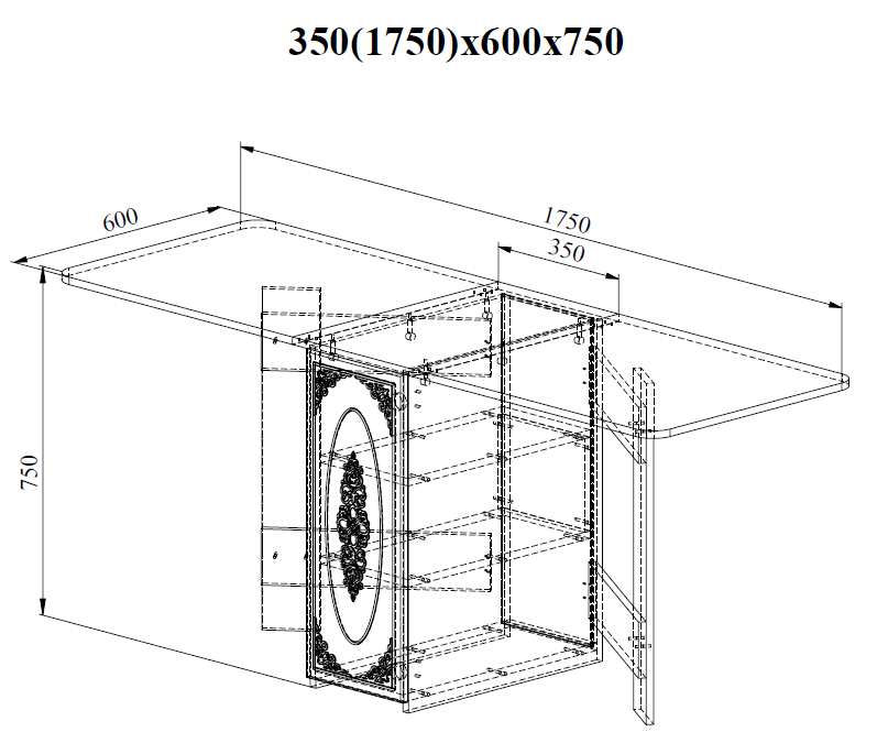 Столик оснащен двумя полками. Мебель изготовлена из качественной ламинированной ДСП 16 мм. В оформлении фасадов МДФ применяется уникальная технология нанесения объемного узора (3D).