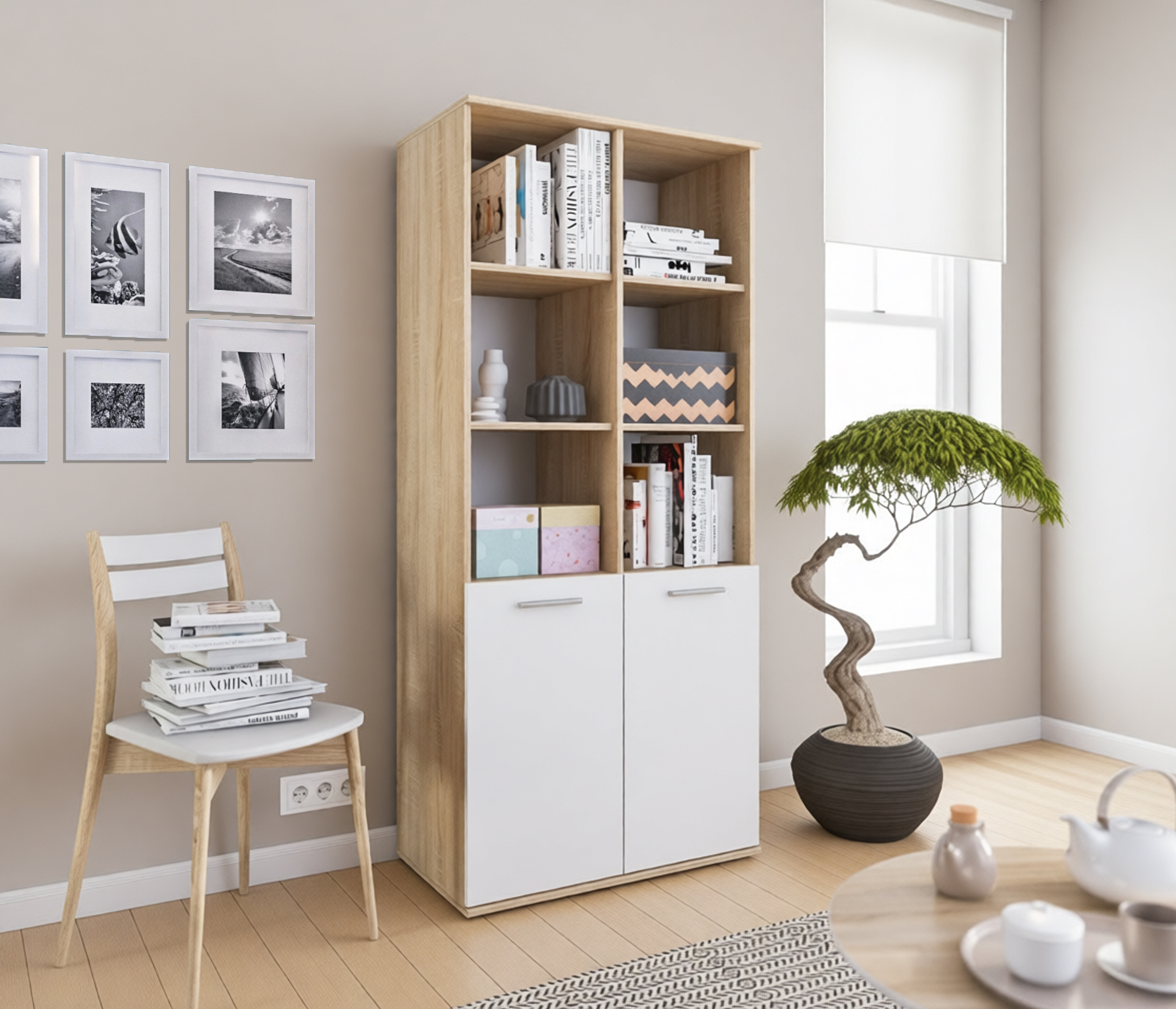 Габаритные размеры – ширина 103 см, высота 39 см и глубина 24 см. Полка состоит из двух открытых отделений, расположенных одно над другим и одного отделения за глухой дверцей.Выполнена полка из современного материала. .Полка крепится к стене при помощи дюбелей, которые входят в комплект.