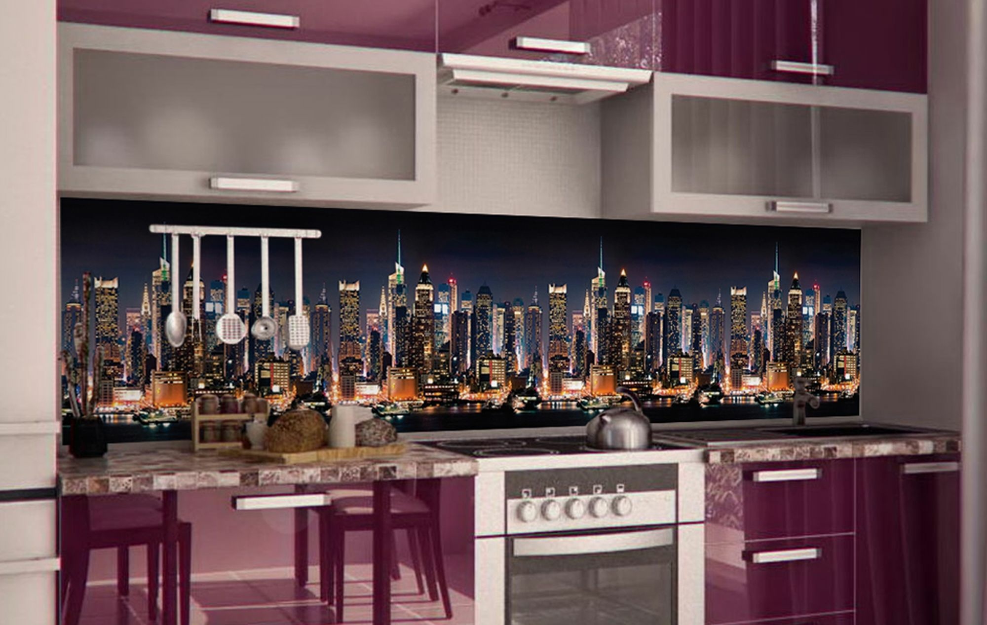 Кухонный фартук Ночной город 1000x600x1.5 мм глянец Код I0000226923