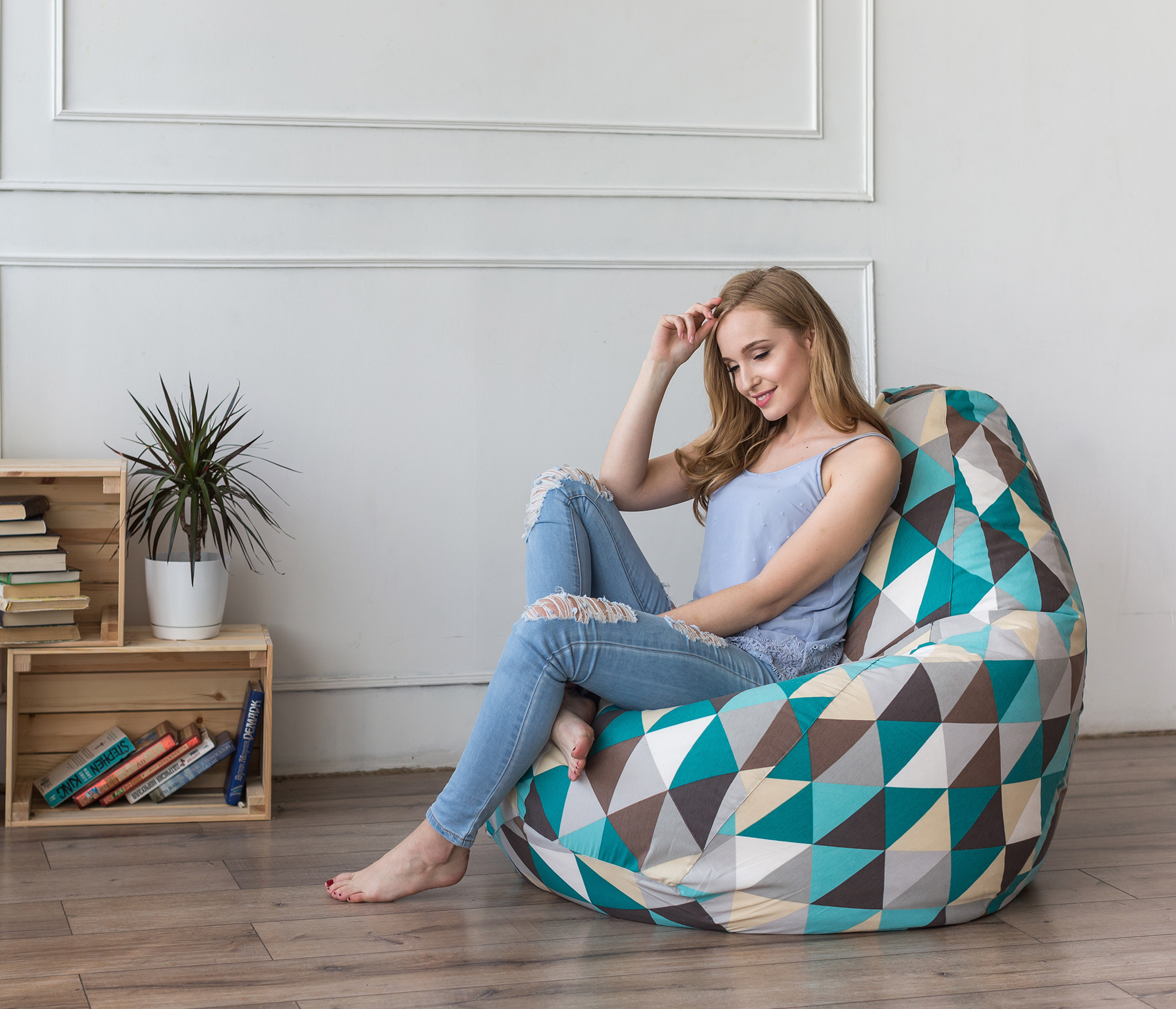 Данное кресло-мешок состоит из двух чехлов: внешний легко снимается и стирается в стиральной машине, и внутренний чехол из спанбонда.Материал внешнего чехла - Жаккард (30% хлопок, 70% полиэстер).
