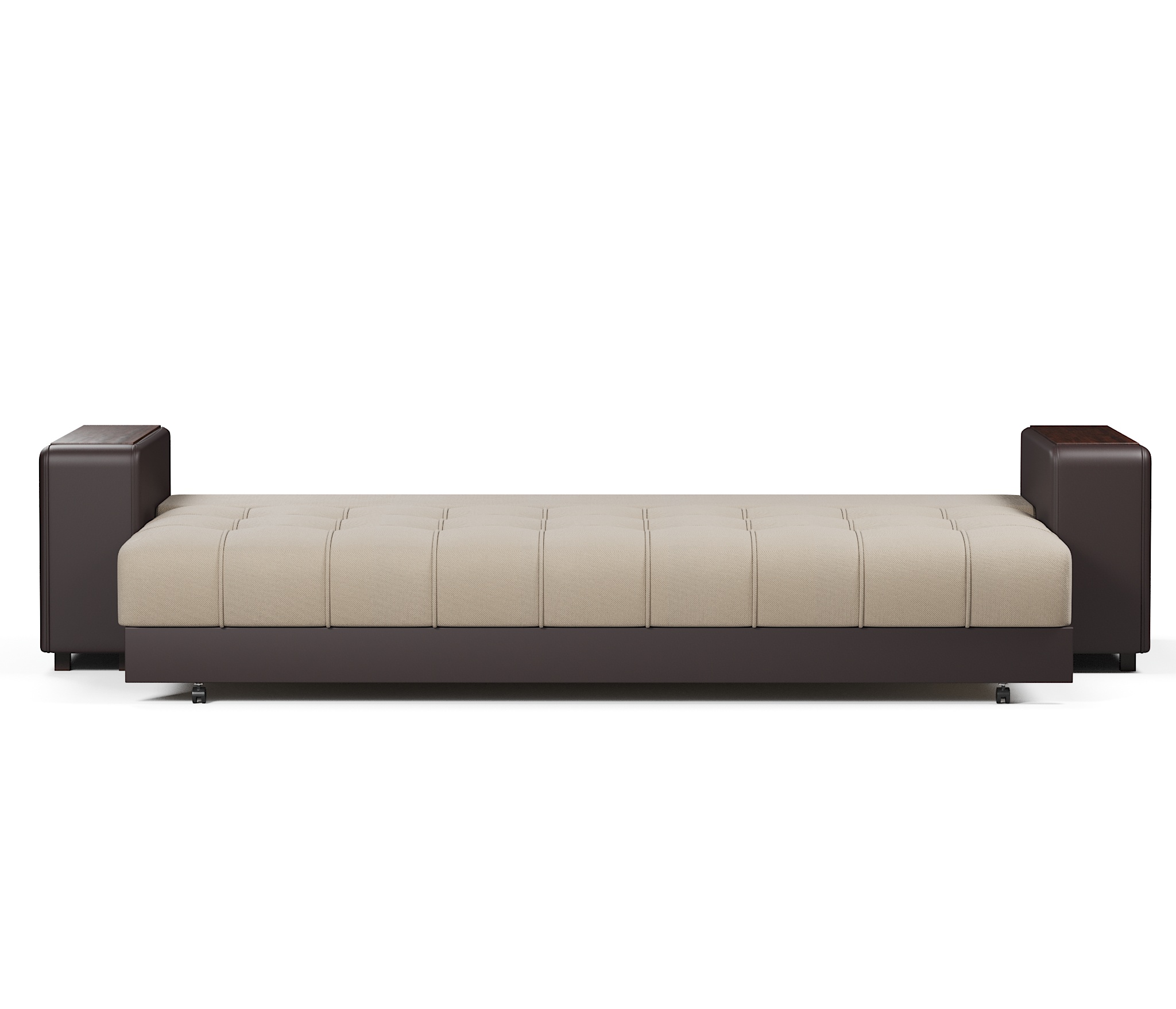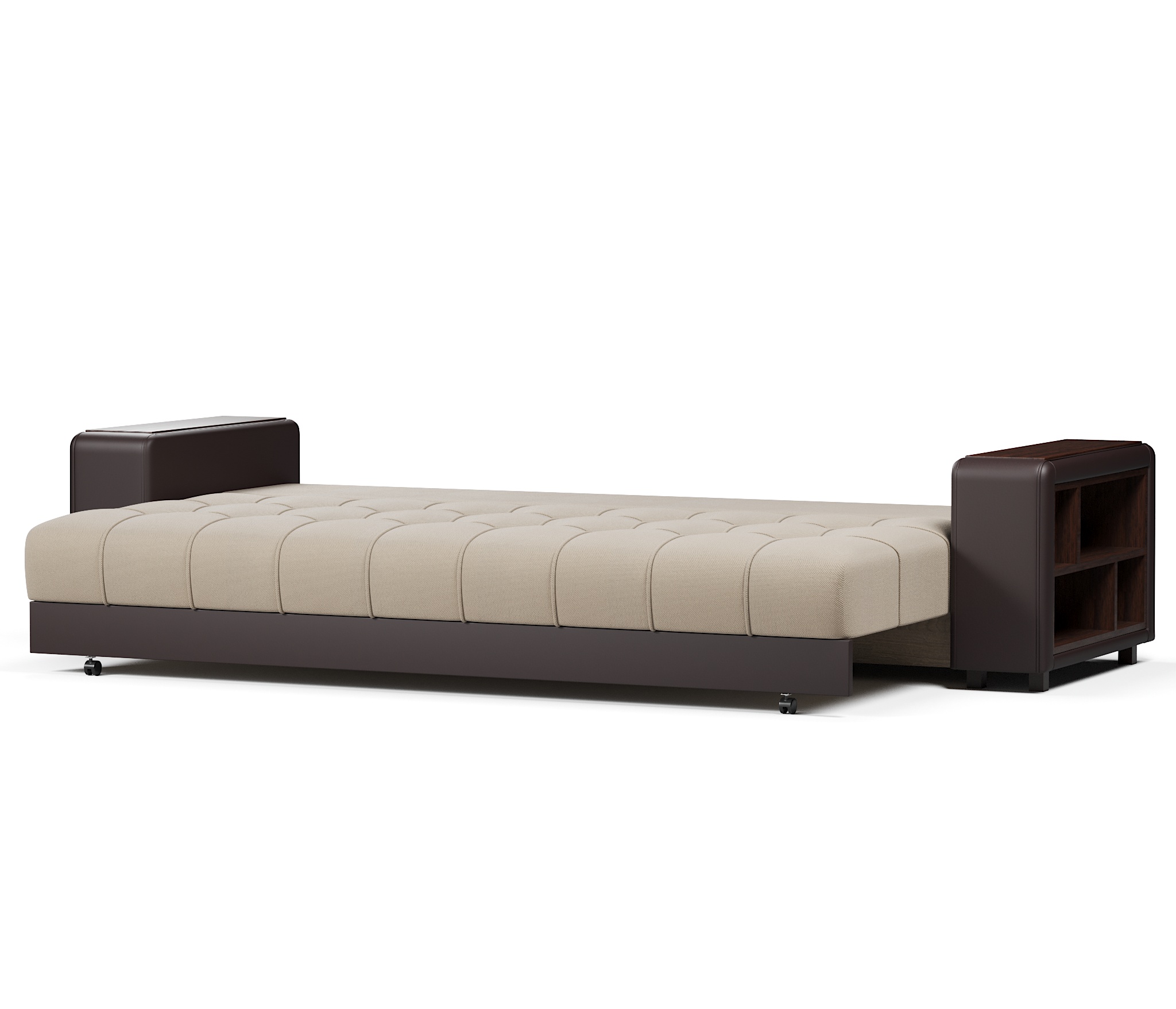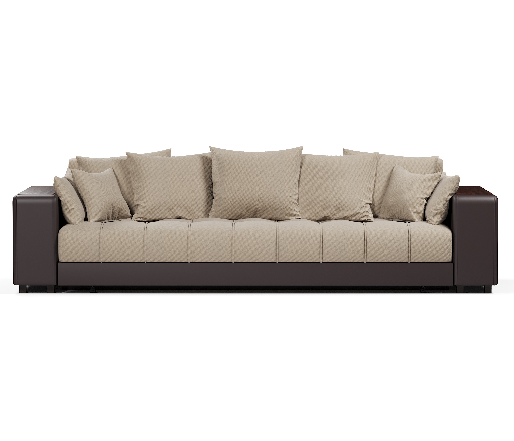 Прямой диван Дубай это отличный выбор для тех, кто планирует создать уют в своей квартире. Модель имеет выдержанный дизайн без элементов, которые перегружают её. С каждой стороны в подлокотниках установлены полки, куда вы сможете складывать различные мелочи, пульт итд.