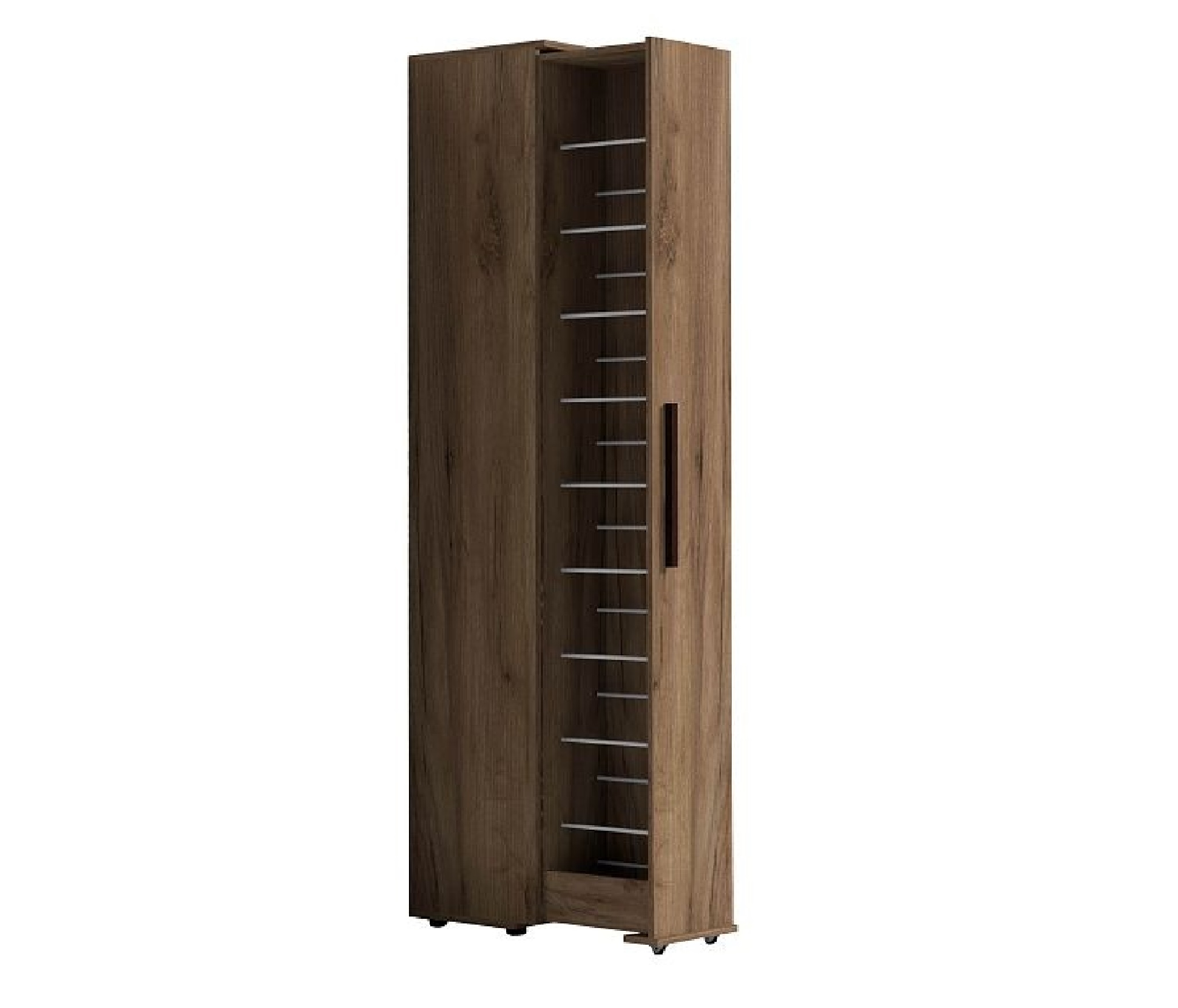 Высокий и узкий шкаф для обуви - идеальное решение для размещения и хранения вашей обуви. Такая обувница поможет разложить до 18 пар обуви, а также средства по уходу за ней. Благодаря шариковым направляющим полного выдвижения и выкатным роликам, шкаф обеспечивает удобный доступ к обуви, а благодаря небольшим габаритам, не занимает много места и подходит для совсем маленьких прихожих. Предусмотрена право- и левосторонняя сборка модуля.