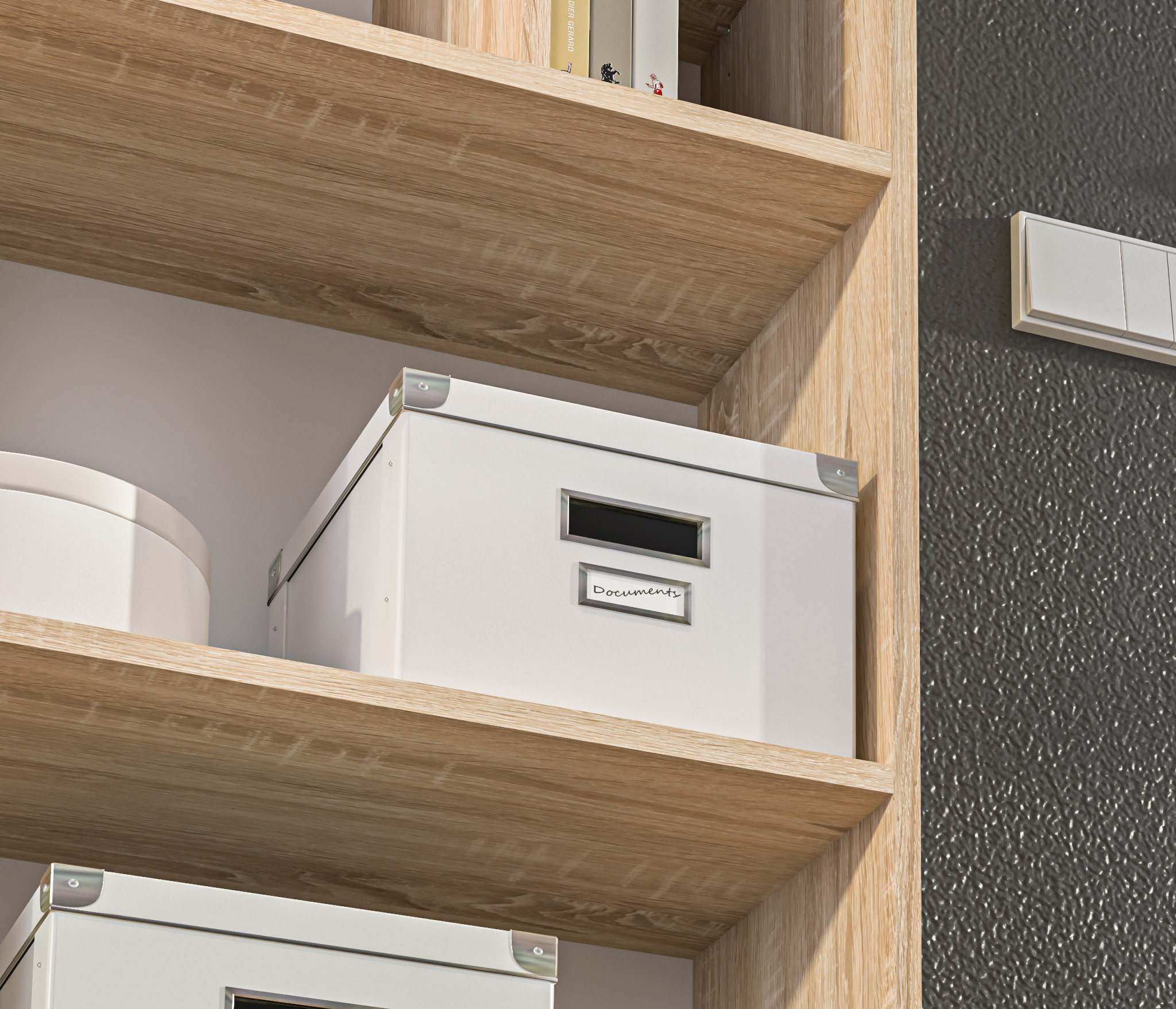 Выполнен стеллаж из современного прочного материала ЛДСП. Материал отделки цвета "Дуб Сонома", устойчив к влаге и воздействию бытовых моющих средств. Стеллаж оснащен протекторами или «лапками», которые не дают повредить пол. Для обеспечения максимальной устойчивости стеллаж надежно крепится к стене. Все необходимые крепёжные элементы входят в комплект.