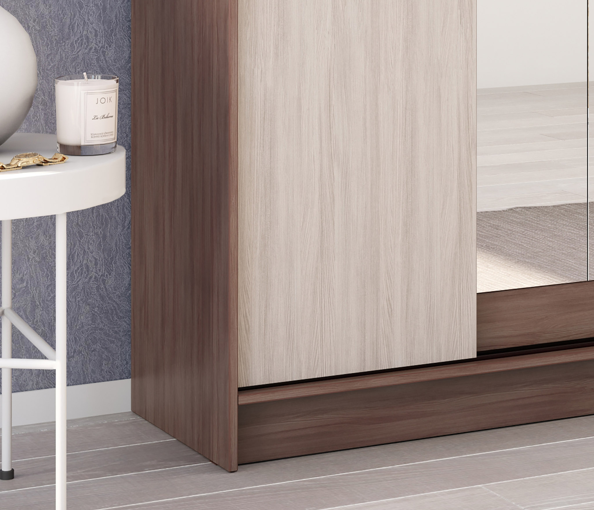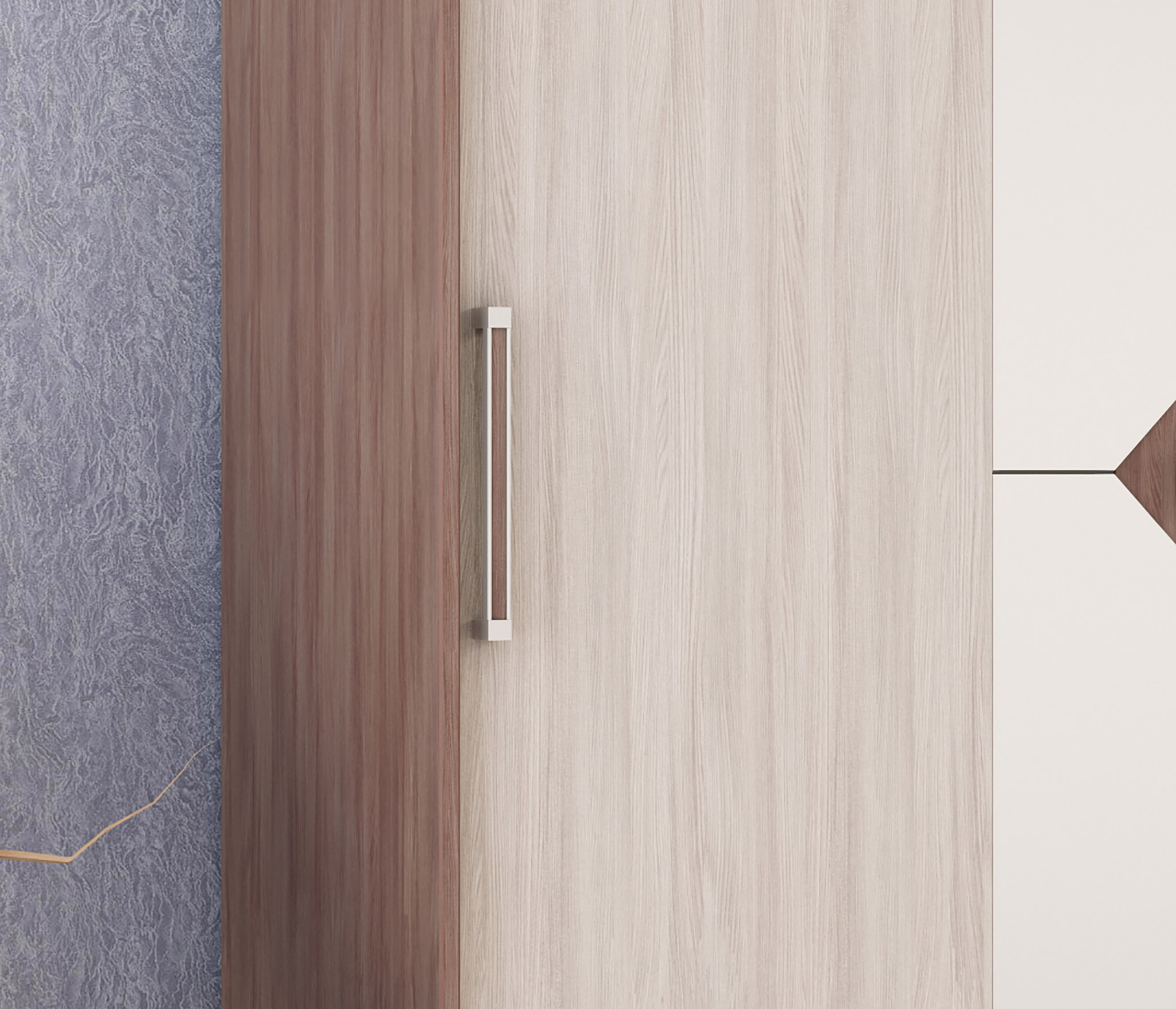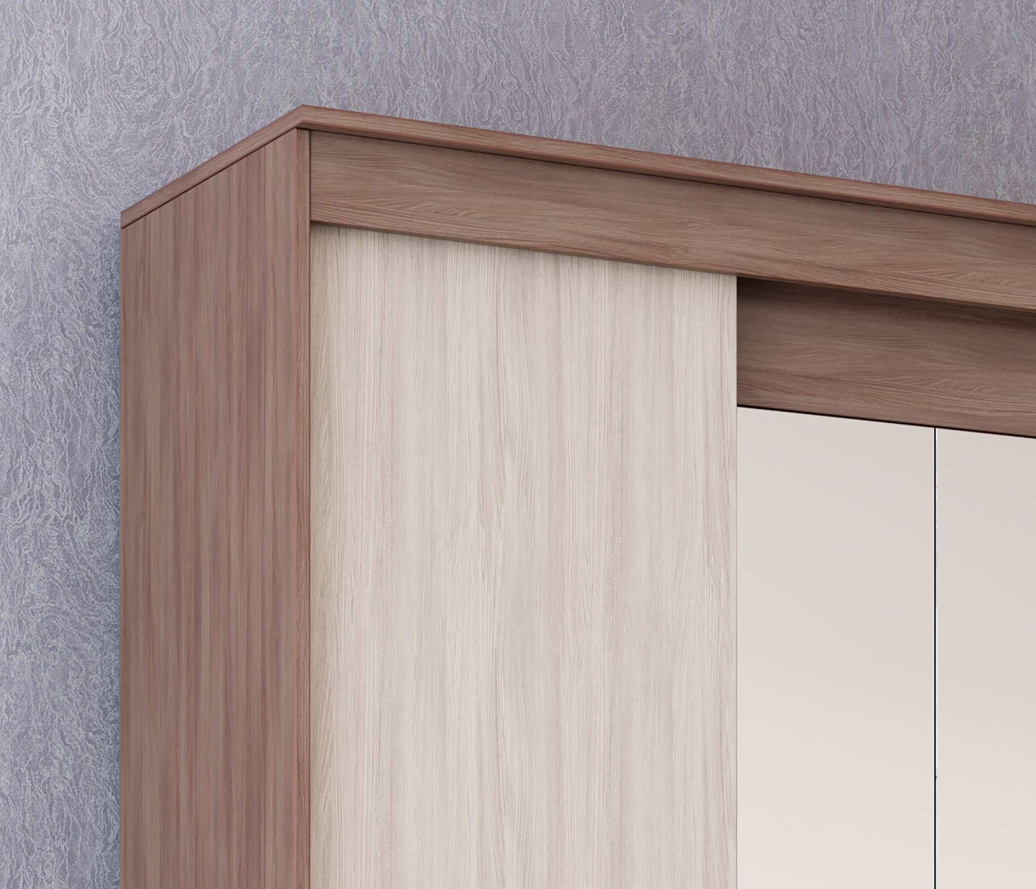 Шкаф-купе Агат обладает простым, но привлекательным стилем исполнения. Модель оснащена множеством полочек в центральном отделении и двумя евроштангами в боковых секциях.