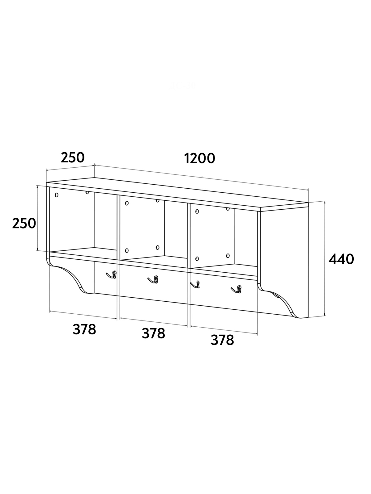 Размеры модуля (ш/г/в) в мм: 1200х250х440.
