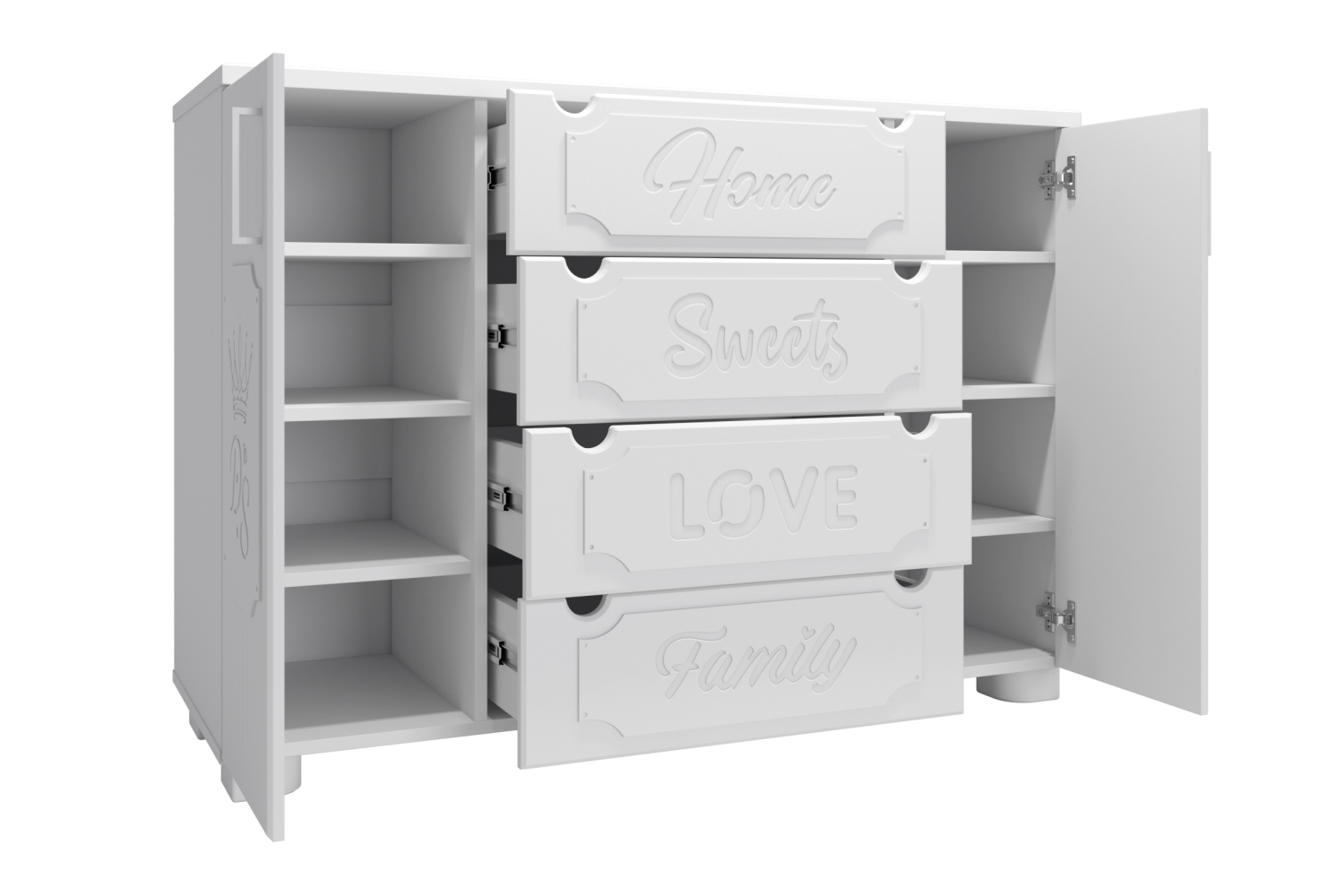 Система мебели Дримстар включает в себя отдельные самостоятельные модули, сочетающие в себе функциональность и уникальность дизайна. С базовым набором модулей легко оформить интерьер любого помещения. Все модули можно комбинировать между собой. Фасады украшены надписями, которые придают моделям оригинальный вид. Коллекция Дримстар поможет вам в оформлении стильного и современного интерьера.