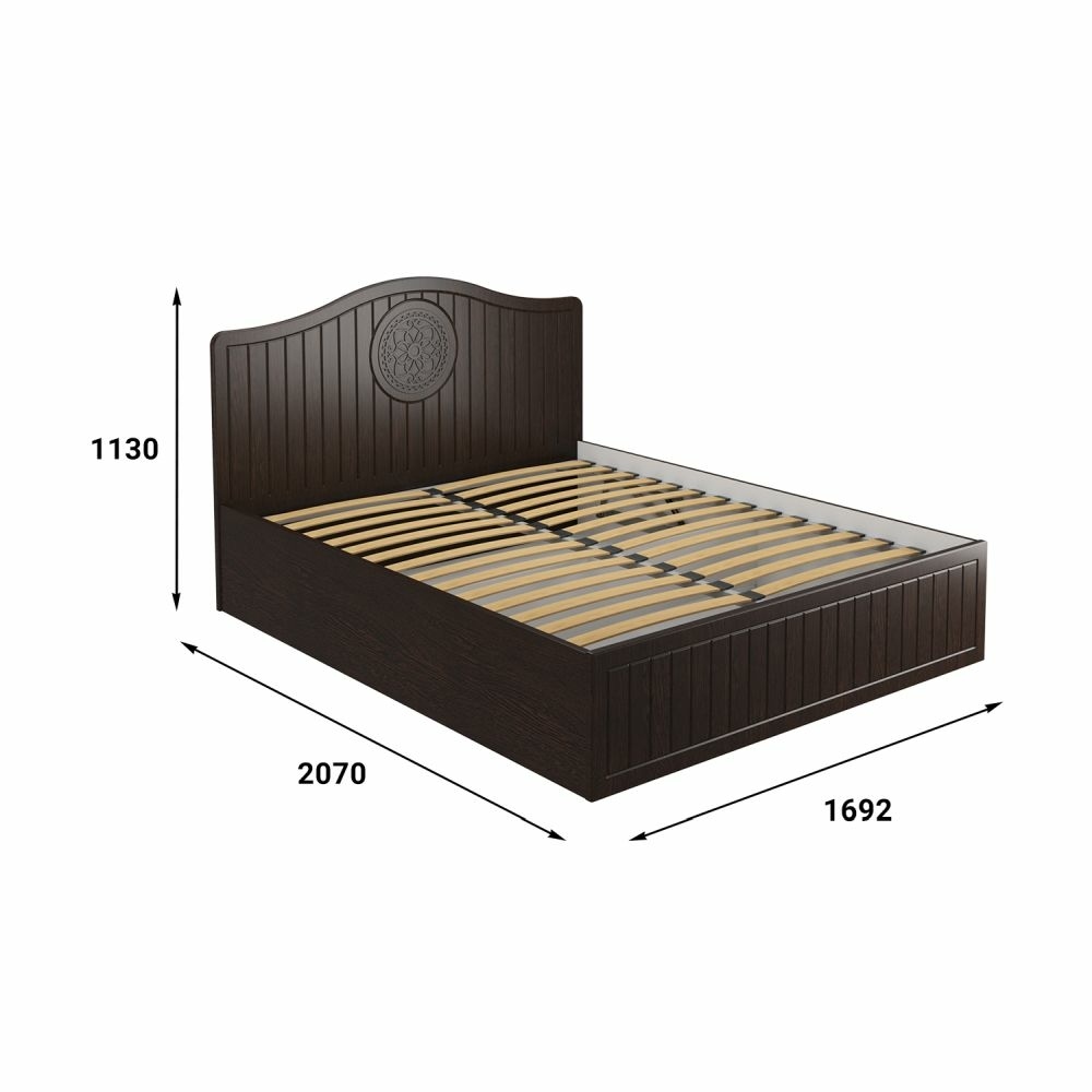 Материал корпуса/фасада: ЛДСП/МДФ. Цвет корпуса/фасада: венге/орех шоколадный. Размеры модуля (в/ш/г) в мм: 1130х1672х2070. Основание кровати: ламели с подъемным механизмом. Особенности: короб для хранения постельного белья.