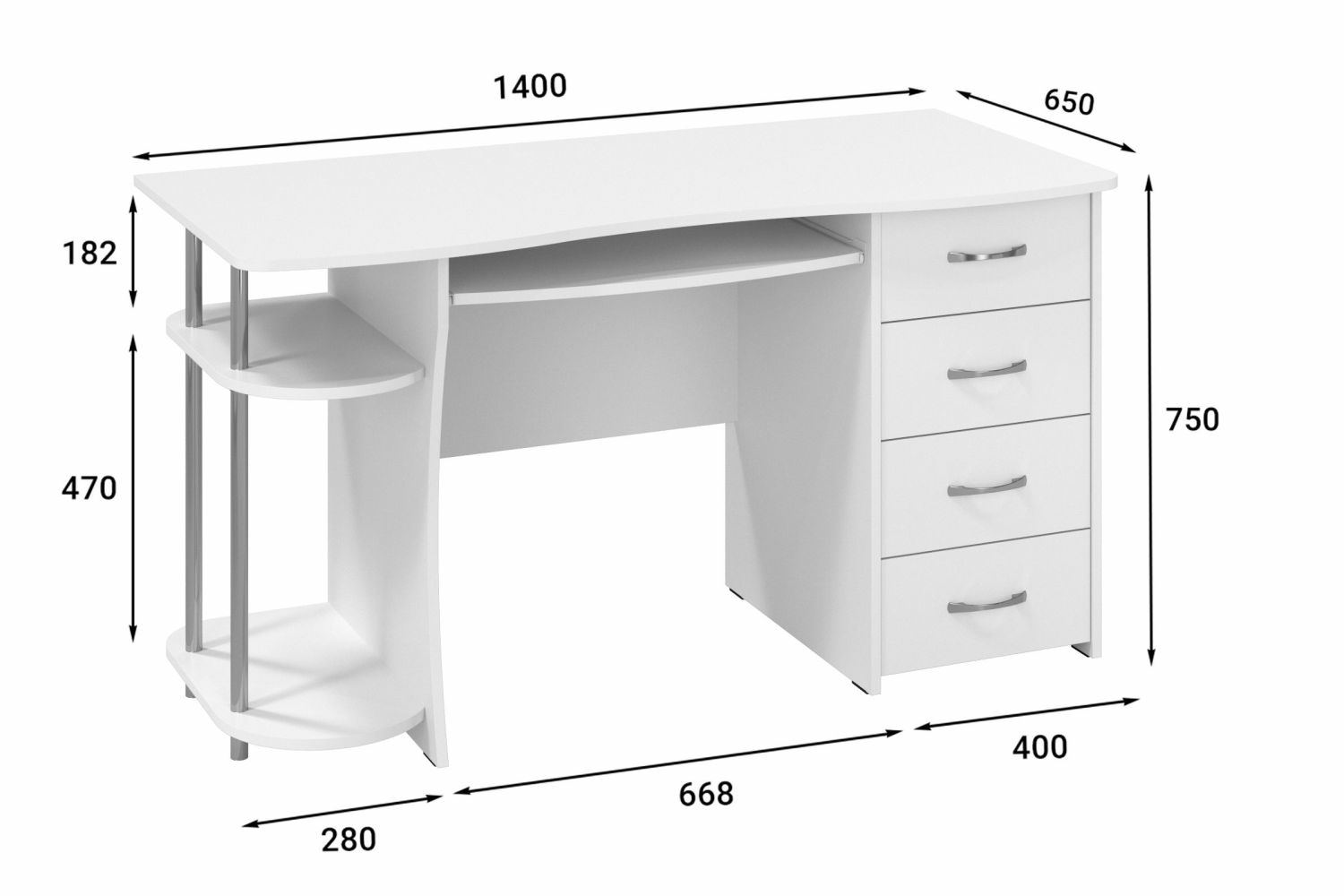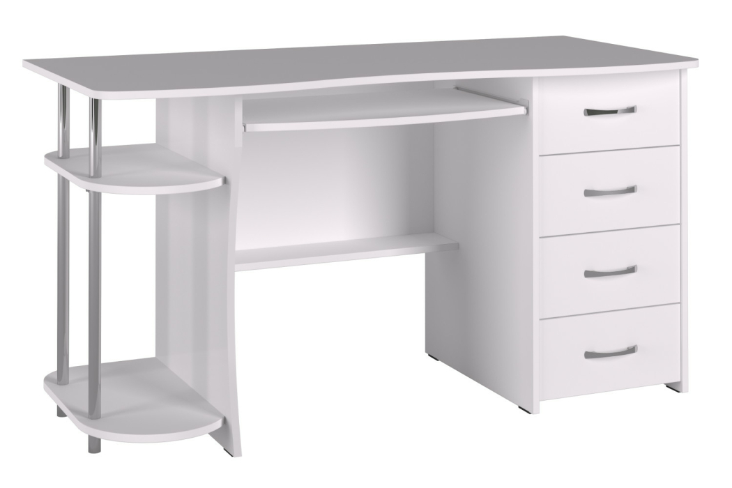 Компьютерный стол С-222БН предусматривает место для монитора, имеются четыре ящика на роликовых направляющих, выдвигающаяся полка для клавиатуры и место для системного блока.