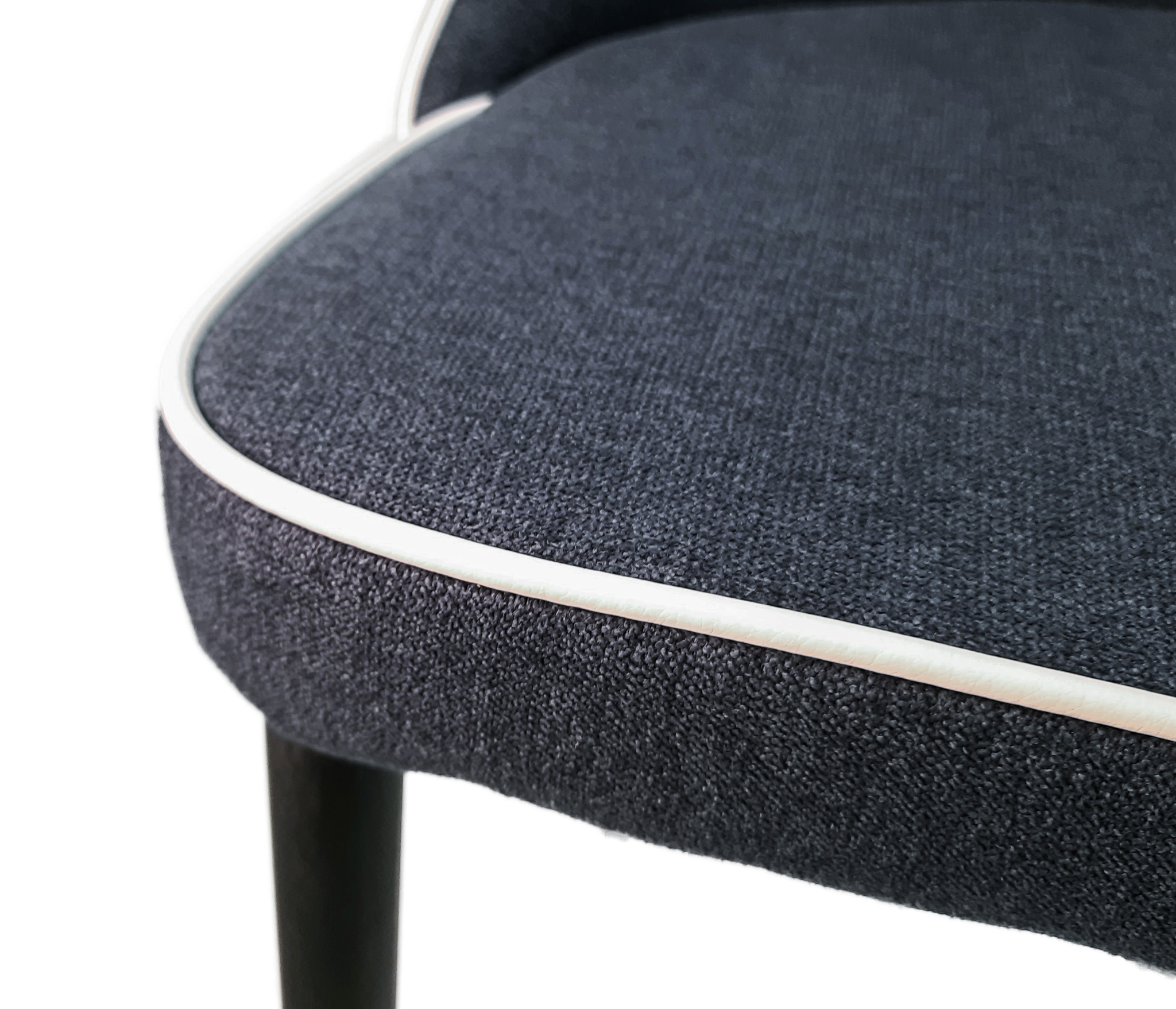 Барный стул. Спинка отделана по контуру контрастным кантом, что делает его очень стильным. Опоры из металлической трубы, порошковая краска. Размер 42x52x101cм.