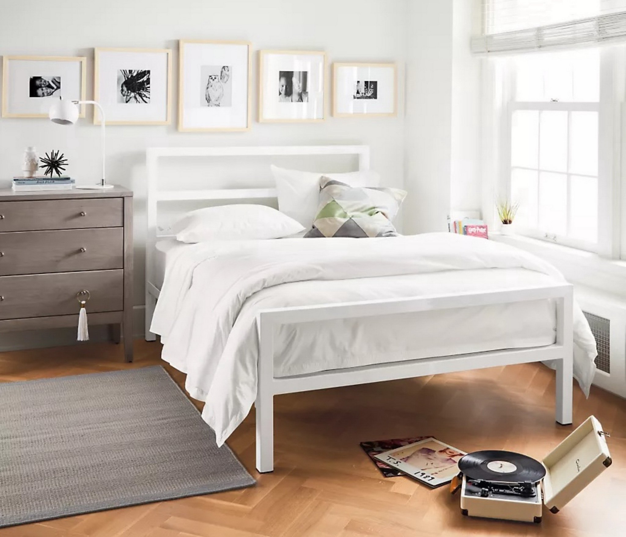 Благодаря отсутствию сплошного полотна изголовья и основания и его замены на горизонтальные перекладины модель выглядит изящно и совершенно не громоздко, благодаря чему может гармонично дополнить любой интерьер в современной стилистике.