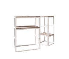 Каркас: профильная труба 20х20 мм.Прочное полимерно-порошковое покрытие черного, белого и серого цвета Дерево: массив сосны 20 мм, покрытое специальным маслом для мебели, цвета на выбор: бесцветный, белый, серый, махагон, орех, морёный дуб, черный, клён, черный графит, голубой графит, темное золото графит, золото графит.