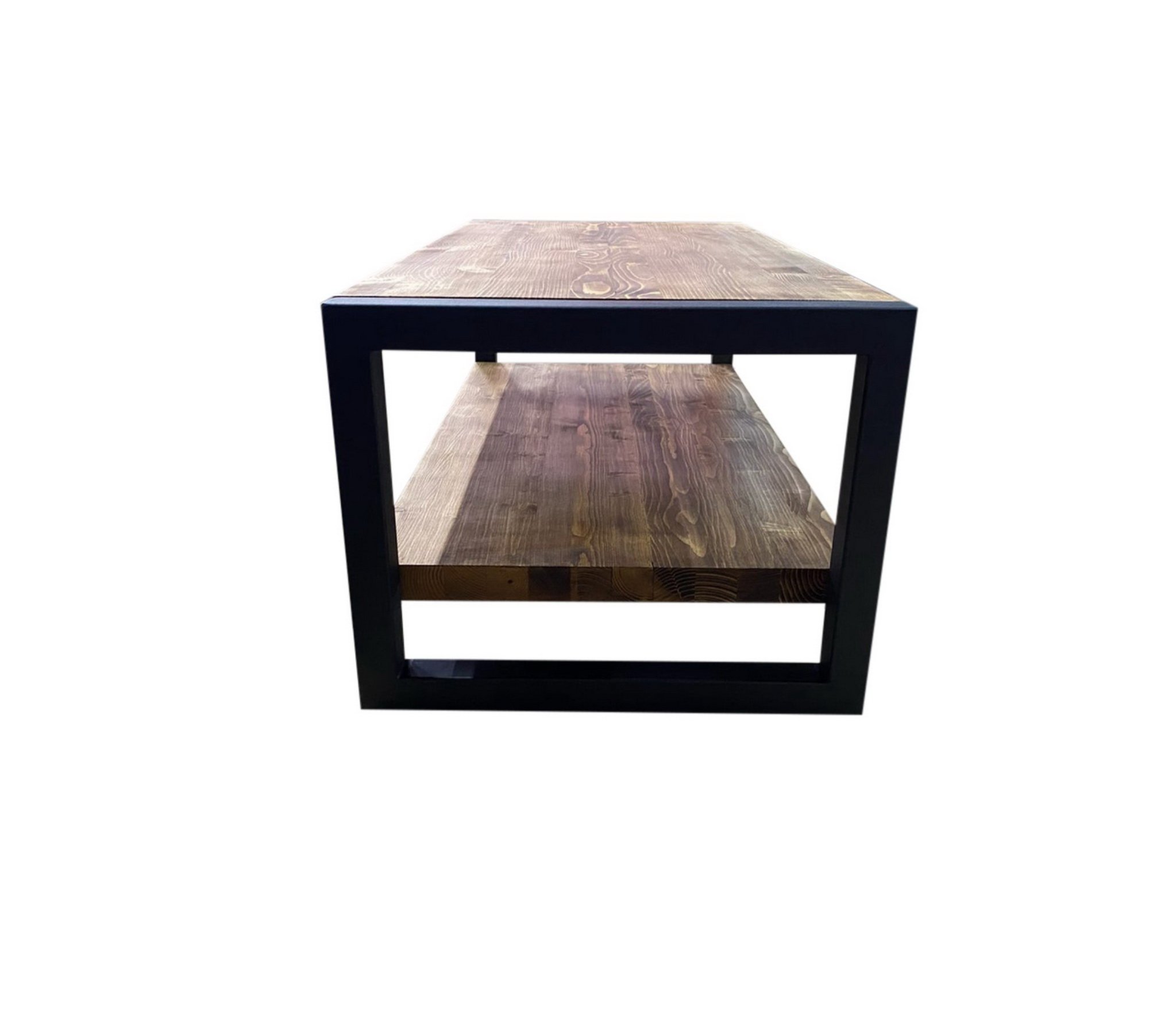 Каркас: профильная труба 40х20 мм.Прочное полимерно-порошковое покрытие черного, белого и серого цвета Дерево: массив сосны 40 мм, покрытое специальным маслом для мебели, цвета на выбор: бесцветный, белый, серый, махагон, орех, морёный дуб, черный, клён, черный графит, голубой графит, темное золото графит, золото графит.