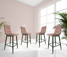 Барный стул станет органичным дополнением к кухонной стойке или высокому кухонному острову. Металлический каркас обладает высоким запасом прочности. Перекладина, соединяющая ножки, обеспечивает опору для ног. Сиденье и спинка изготовлены из фанеры с мягким слоем пенополиуретана, обиты бархатом, который чрезвычайно приятен на ощуп, устойчив к механическим повреждениям и легко очищается от грязи. Тонкая декоративная строчка делает модель еще более элегантной. Размер: 440*550*860мм.