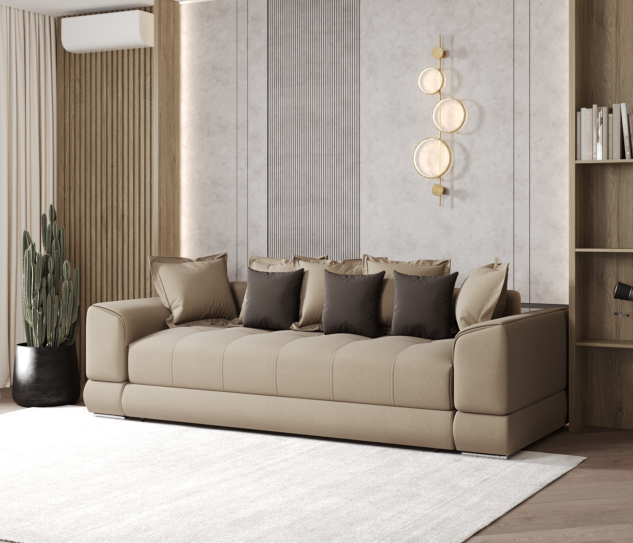 Прямой диван Модерн станет центром внимания и отдыха для вашей семьи и друзей. Габариты модели позволяют разместить диван в любой части квартиры. Диван включает в себя все необходимое для комфорта. Ненавязчивый дизайн не будет надоедать глазами и всегда будет радовать своим уютом.