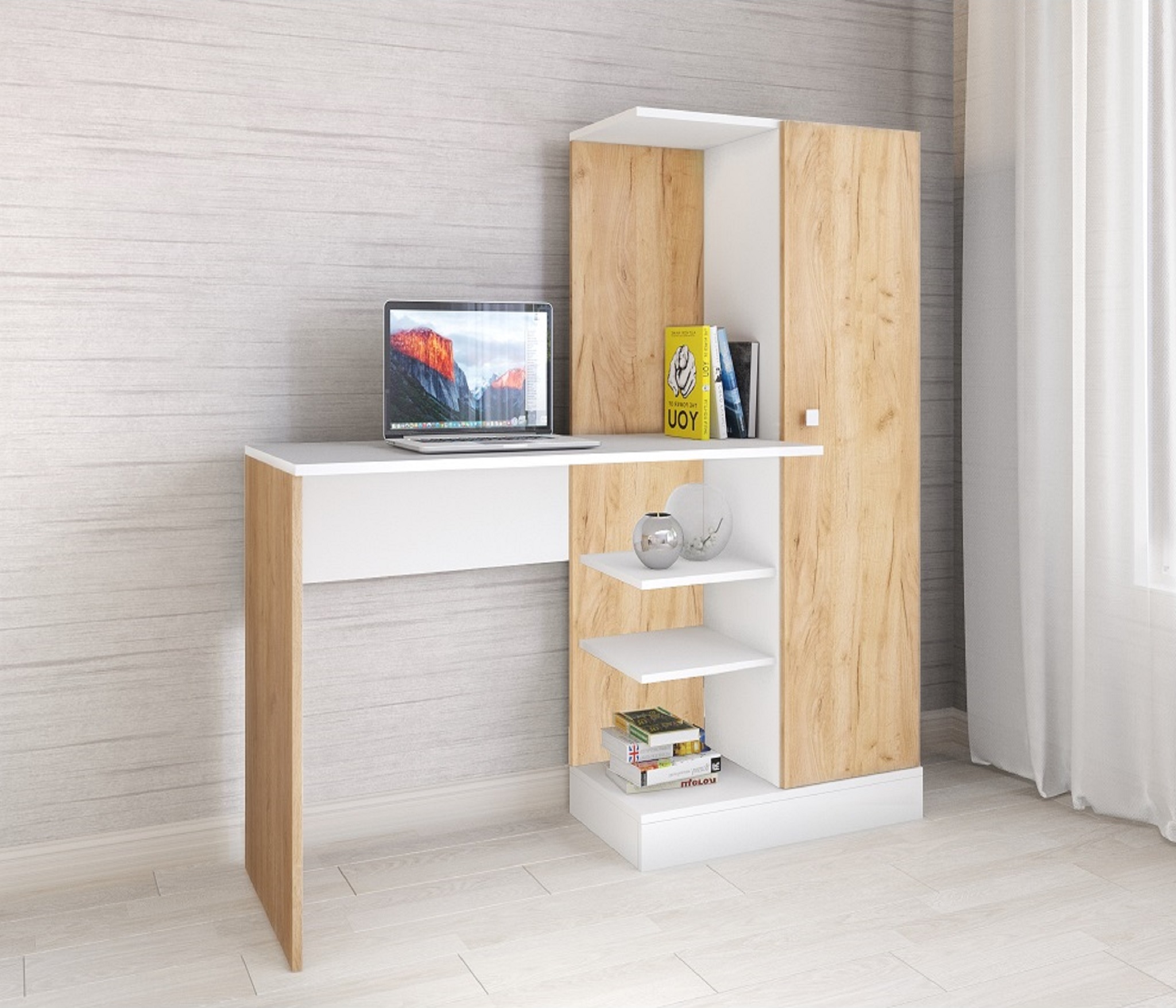 Стол компьютерный Квартет-6 (Дуб крафт/белый)