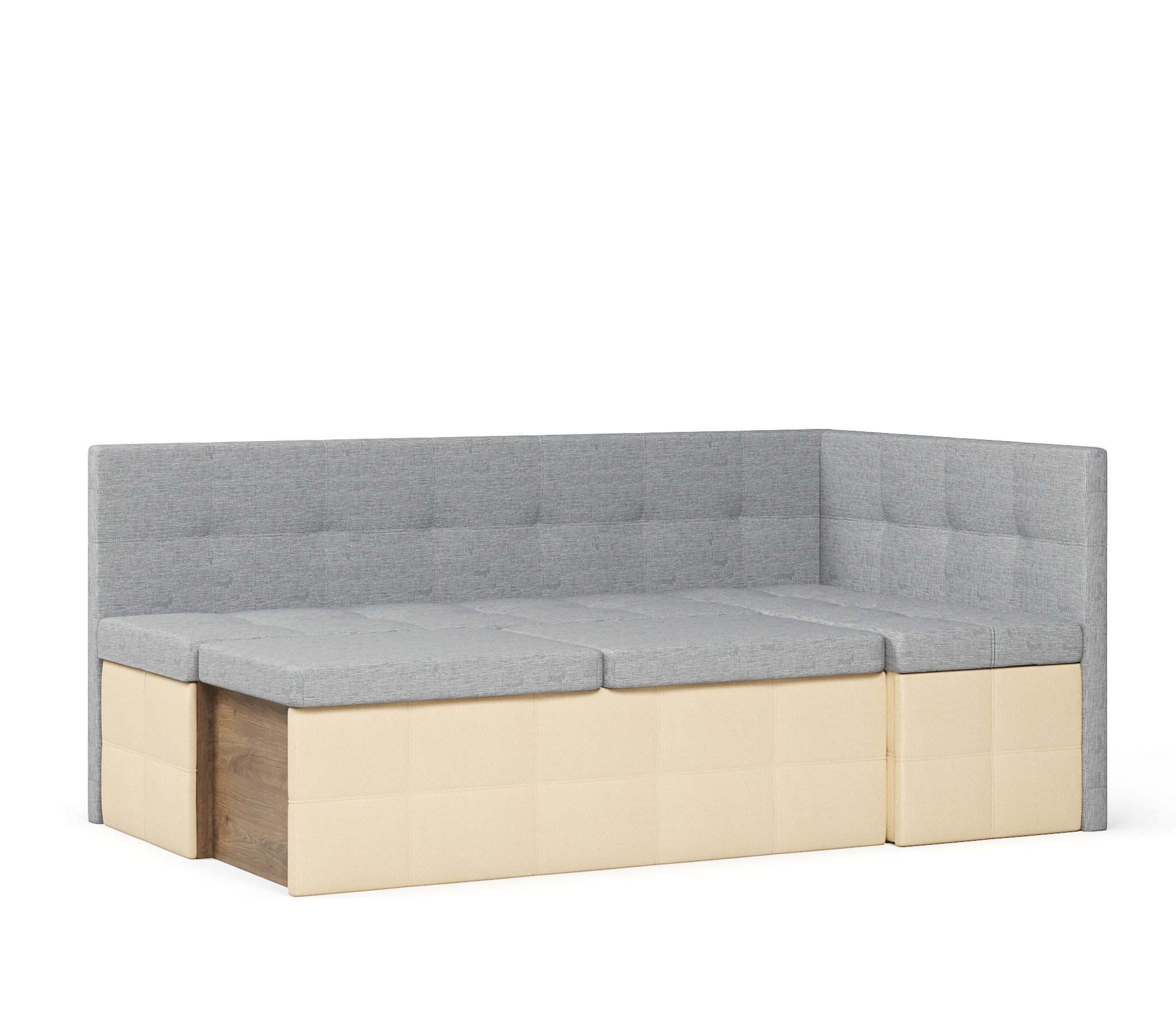 Диван кухонный угловой Домино выкатной, рогожка+экокожа (Серый) Код I0000298662