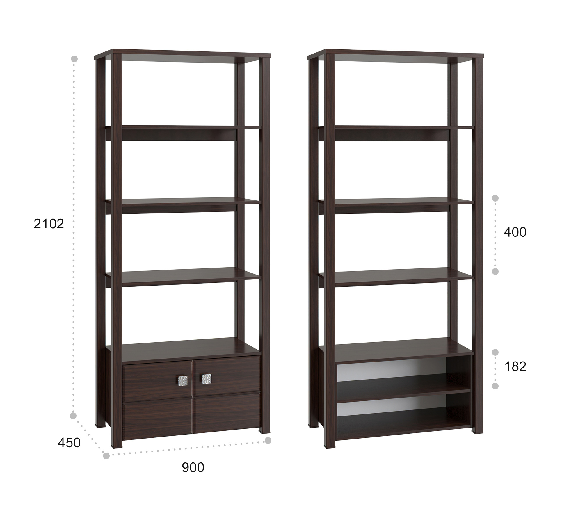 Размеры модуля (ш/в/г) вмм: 900х2102х450.Материал корпуса/фасада: ЛДСП, МДФ.
