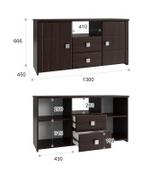 Размеры модуля (ш/в/г) вмм: 1300х666х450.Материал корпуса/фасада: ЛДСП, МДФ.