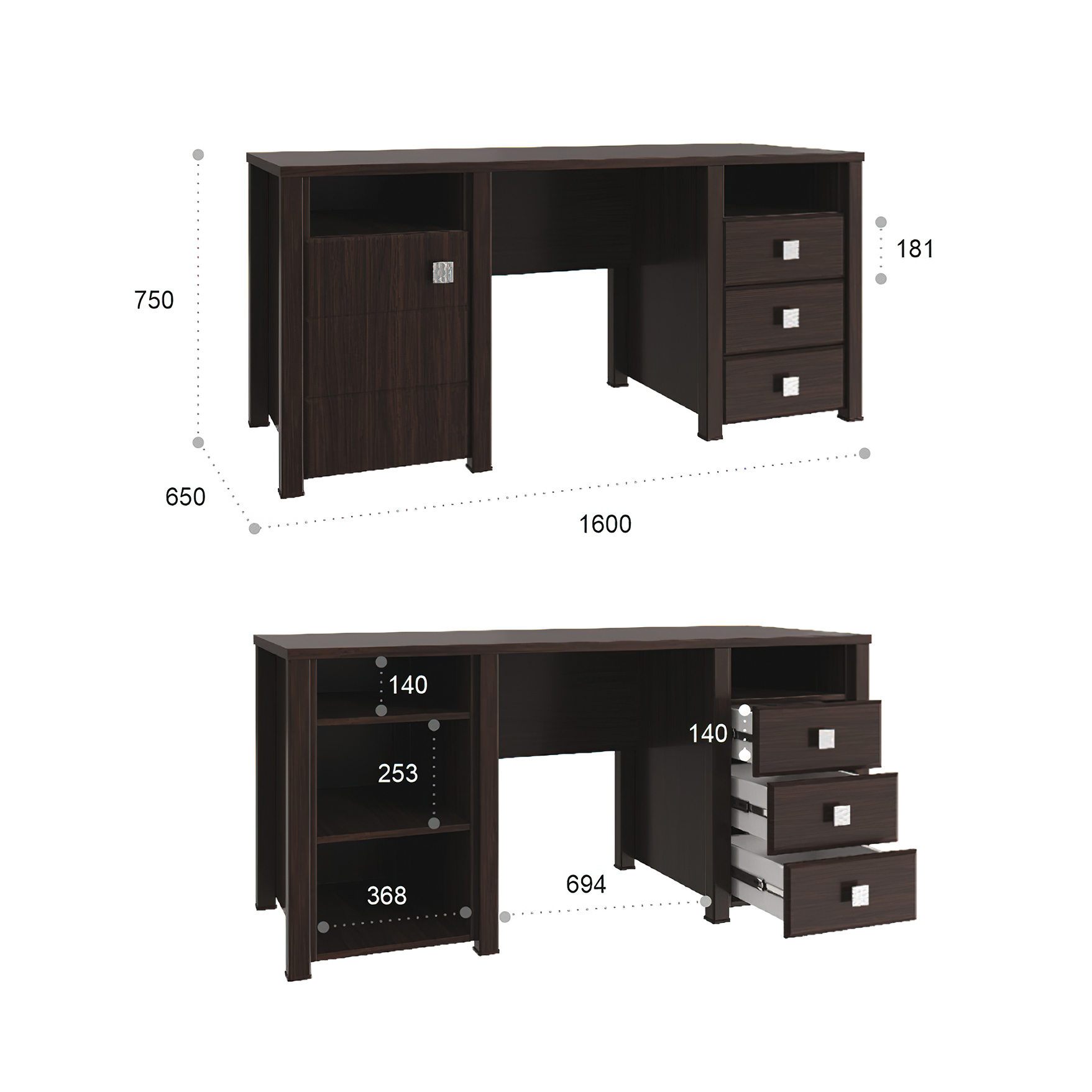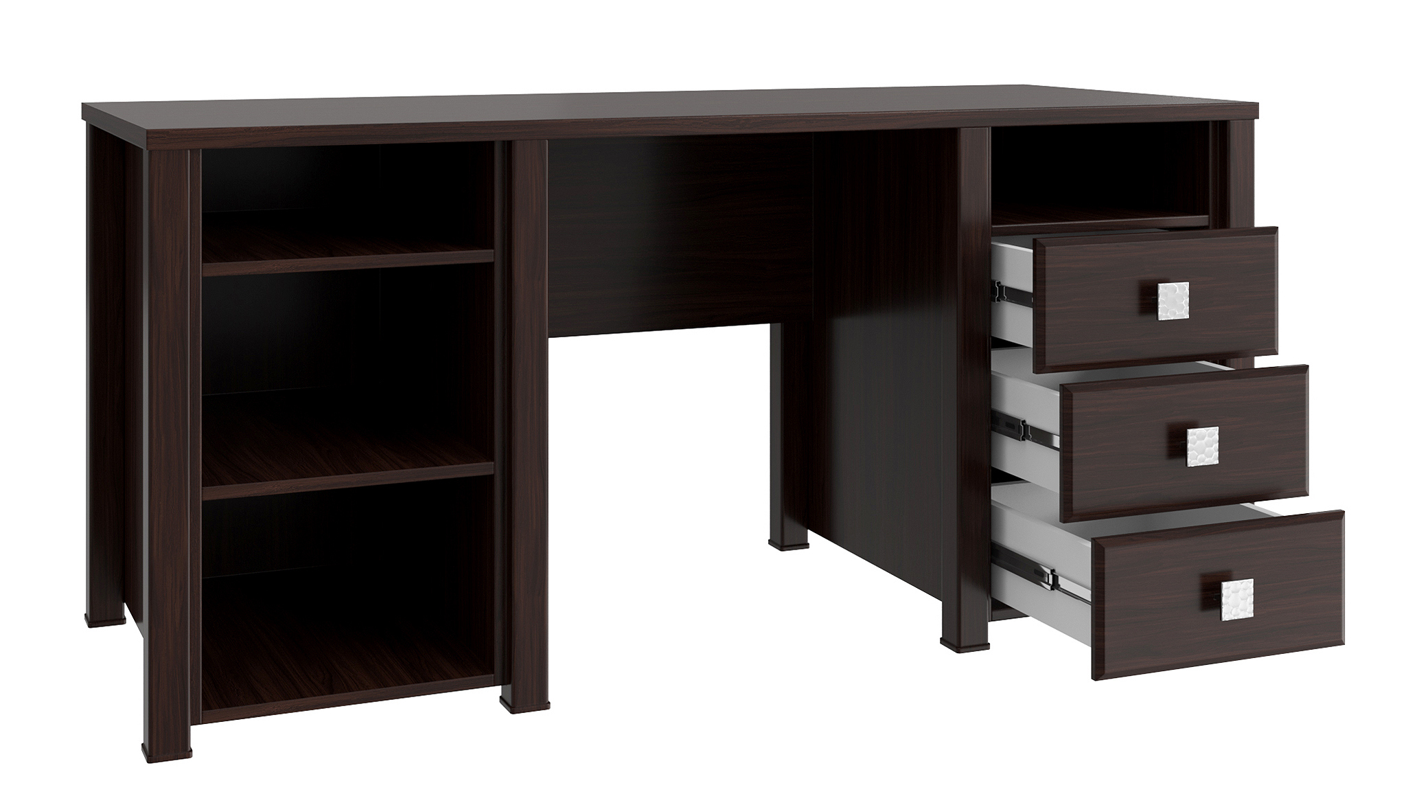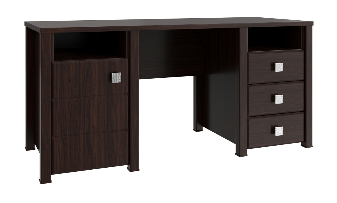 Письменный стол Изабель ИЗ-41К стильный и практичный вариант как для руководителя, так и для школьника. В этой модели присутствует всё необходимое для работы дома и офиса. Стол оснащен двумя нишами для документов, три вместительных ящика на телескопических направляющих и закрытое отделение с двумя полками.Важная информация.Мебель доставляется в разобранном виде, в упаковках.