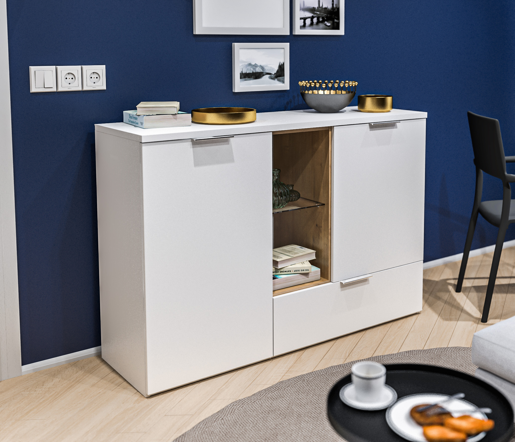 Материал корпуса: ЛДСП цвет Белый Альпийский, Дуб Гамильтон натуральный.