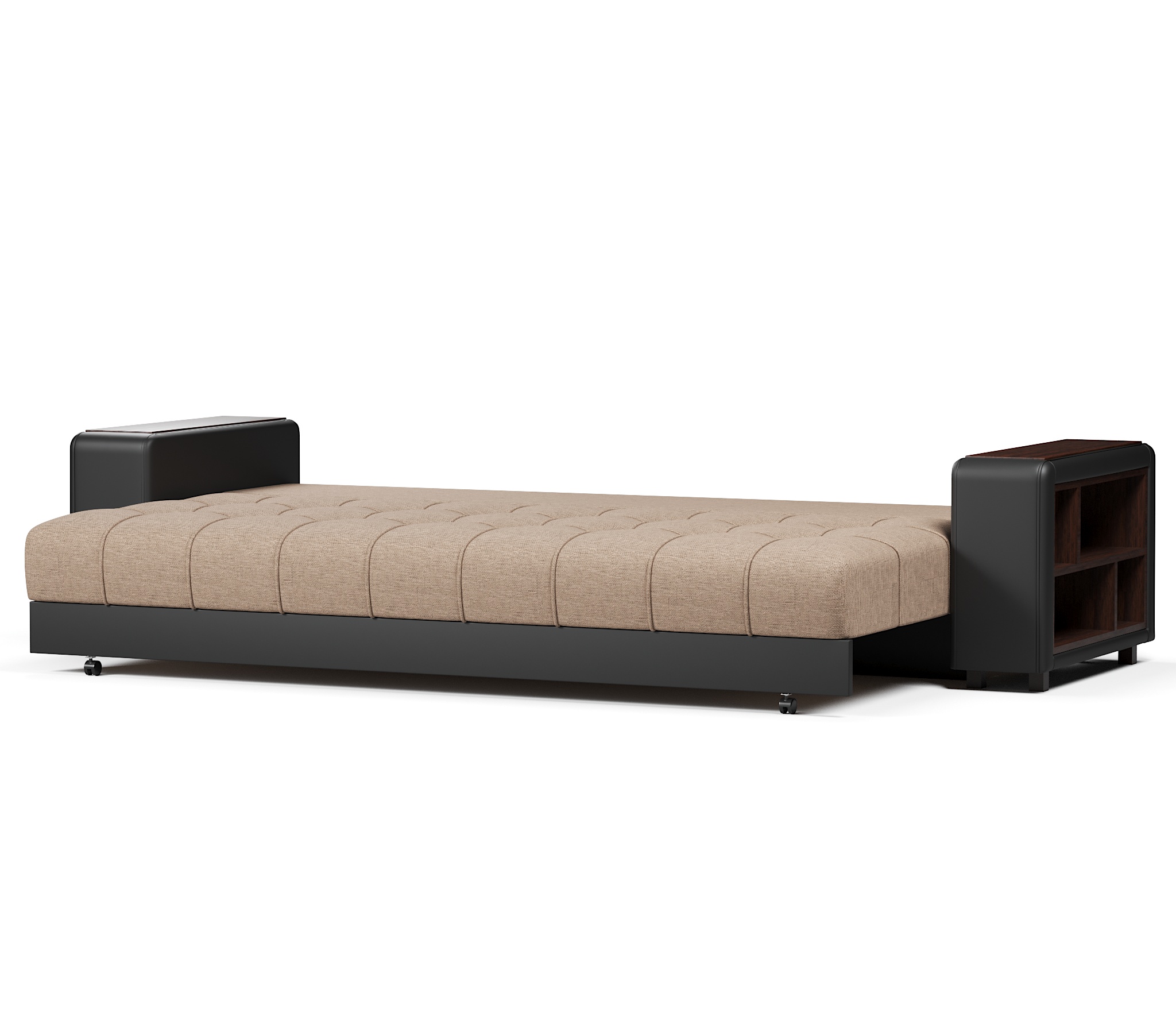 Прямой диван Дубай это отличный выбор для тех, кто планирует создать уют в своей квартире. Модель имеет выдержанный дизайн без элементов, которые перегружают её. С одной стороны в подлокотнике установлены полки, куда вы сможете складывать различные мелочи, пульт итд.