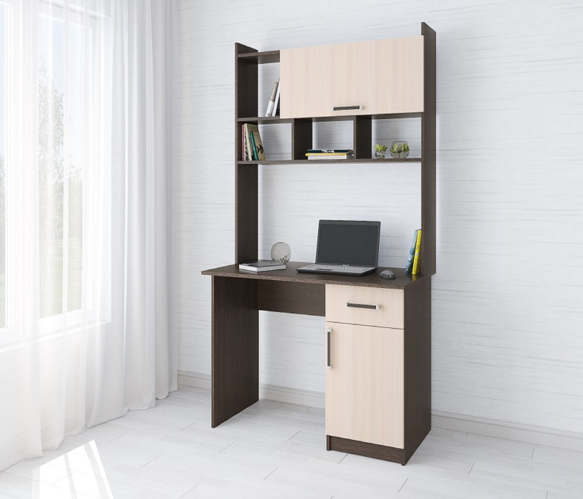 Компьютерный стол Квартет-10 - модуль, продуманный до мелочей и созданный для Вашего максимального комфорта в процессе работы или учебы дома. Прямоугольная столешница, надстройка с открытой и закрытой полками и тумба - все, чтобы обеспечить удобное и грамотное хранение на рабочем месте. Приятный декор с имитацией текстуры натурального дерева придется по душе любителям эко-стиля в интерьере.