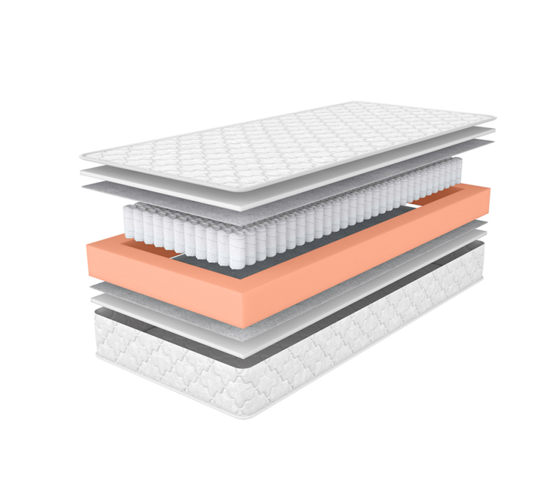 В основе матраса размещен блок независимых пружин, которые отлично адаптируются к контурам тела и обеспечивают оптимальную поддержку. Экопол(белый войлок, хлопок, полиэстер), входящий в состав матраса, придает ему дополнительную упругость и способствует равномерному распределению веса. По периметру матрас усилен коробом из плотной ортопедической пены, продлевающий срок службы матраса.