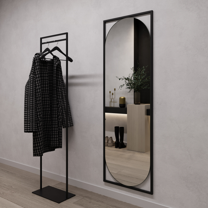 Интересное дизайнерское решение в виде достаточно крупного настенного зеркала овальной формы в прямоугольной раме идеально для реализации любого современного интерьера. Сильно вытянутый овал позволяет не только визуально увеличивать пространство, но и делать потолки более высокими. Зеркало подходит для интерьеров, выполненных как в классических, так и в современных стилях и может использоваться для помещений любого назначения. Высококачественное зеркальное полотно и прочная металлическая рама делают эту модель абсолютно безопасной. На тыльной стороне рамы имеются специальные крепёжные элементы.