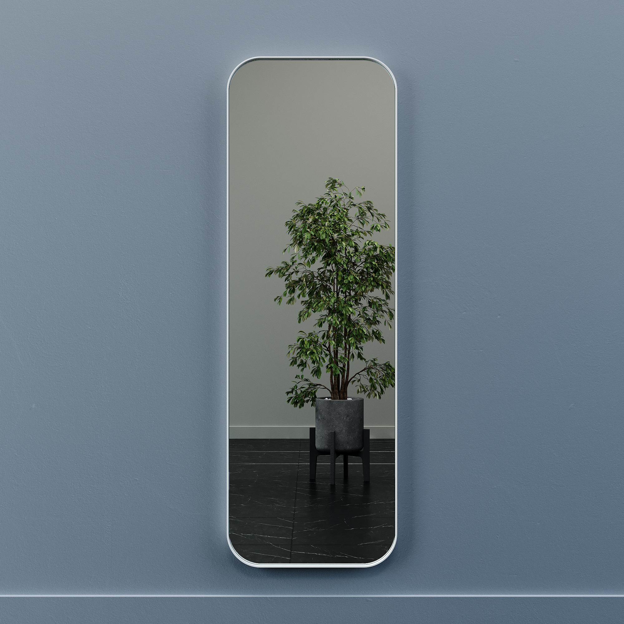 Эффектное настенное зеркало в тонкой металлической раме с закруглёнными углами можно с уверенностью назвать универсальным. Оно имеет прямоугольную форму и подходит как к классическим интерьерам, так и к современным. Крупный формат делает это зеркало функциональным с возможным размещением в помещениях различного назначения: спальне, ванной, гостиной, коридоре. Рама выполнена из высокопрочного металла, поэтому зеркало устойчивое и безопасное. Зеркальное полотно бельгийского производства, бренда AGC, продукция которого высоко ценятся во всём мире.
