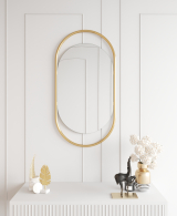 Идеальная симметрия и простая изысканность ар-деко в виде овального настенного зеркала в металлической раме способны дополнить интерьер, выполненный в любом стиле, начиная от винтажного и заканчивая авангардным. Зеркальное полотно является продукцией известного бельгийского производителя AGC, который славится непревзойдённым качеством своих зеркал. Идеально подходит для ванной комнаты или спальни.