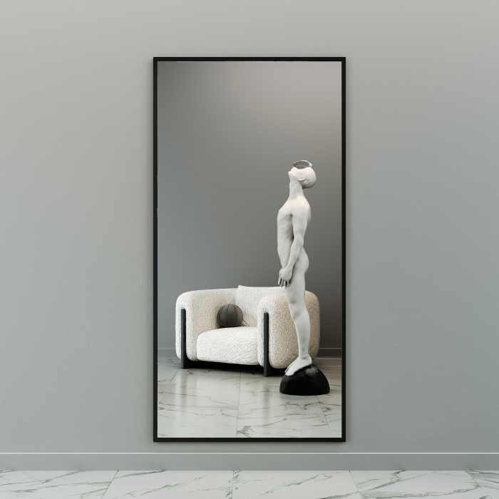 Отзывы о Столплит Дизайнерское настенное напольное зеркало GENGLASS Halfeo XL в металлической раме Черный