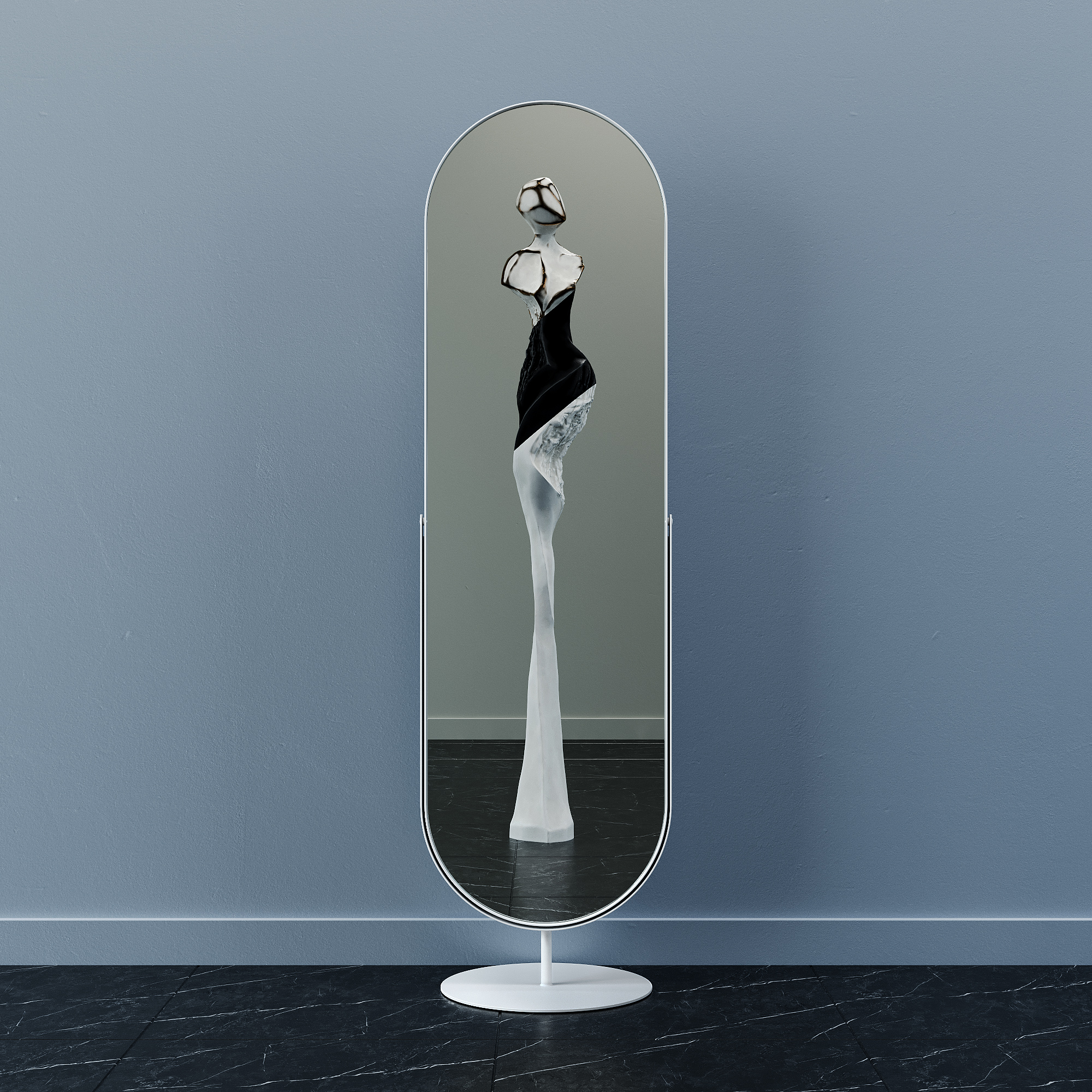 Дизайнерское напольное зеркало GENGLASS Ozevis в металлической раме (Белый) Код I0000312550