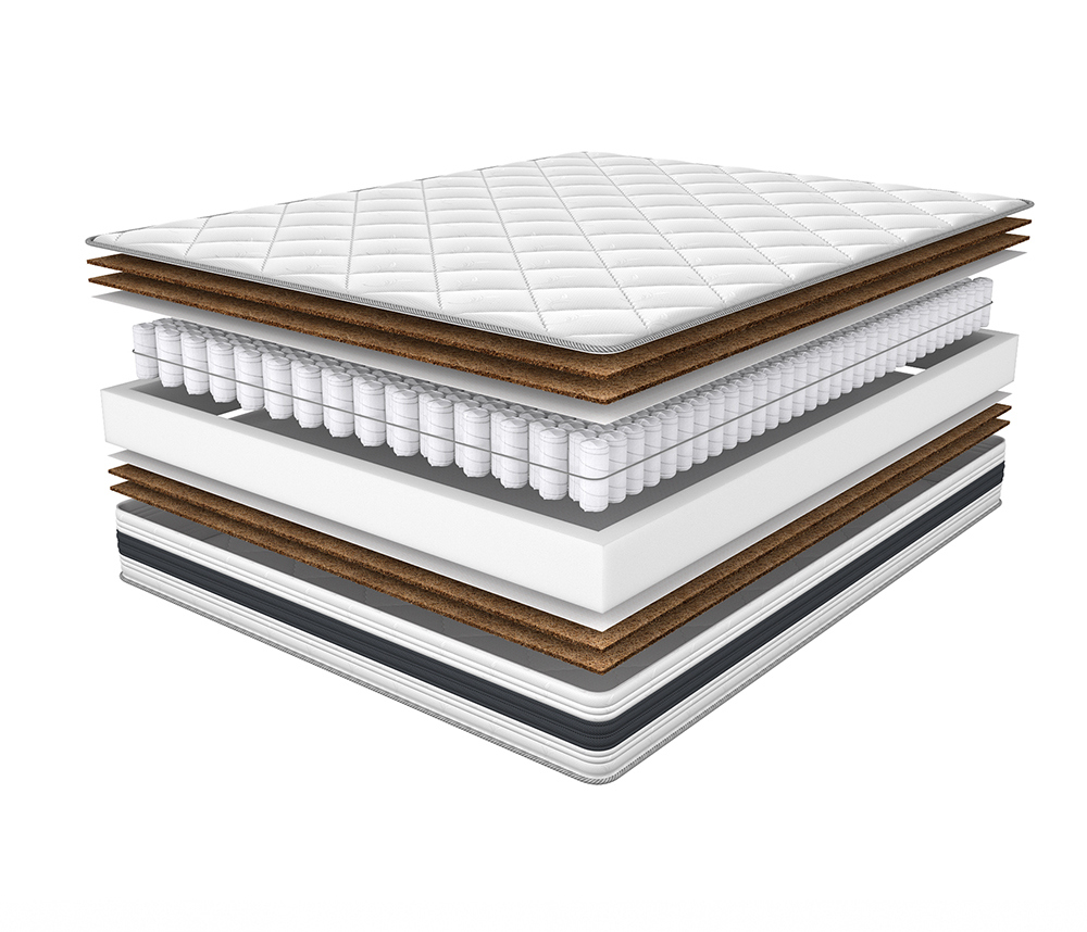 Кокосовая койра в составе комфортного слоя – экологически чистый, хорошо вентилируемый материал. За счет упругих, плотно сплетенных волокон в составе он обеспечивает правильную поддержку позвоночника и гигиену спального места.