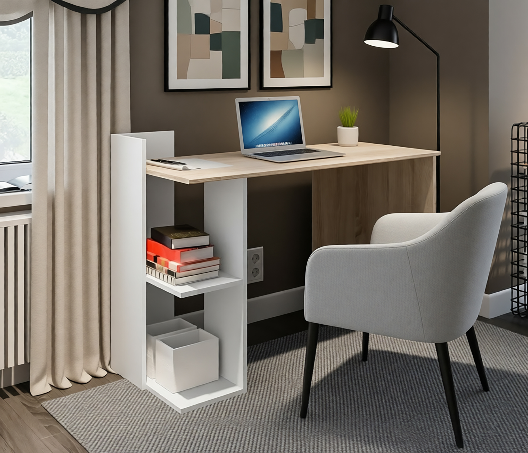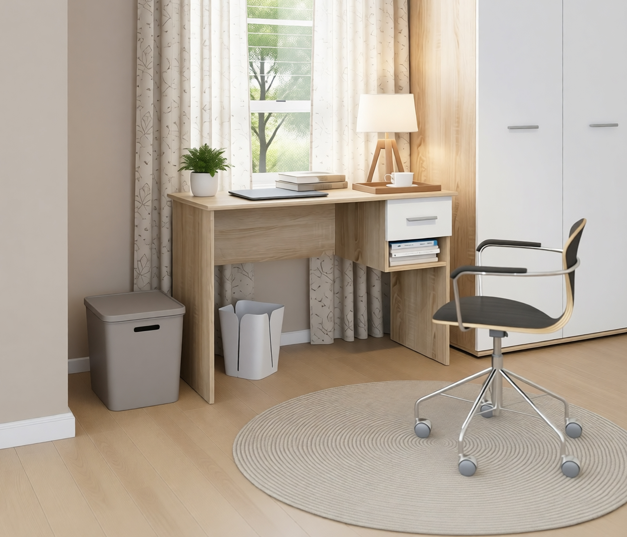 Минималистичный декор, отсутствие ручек и нейтральный цвет стола позволят разместить его в любой интерьер. Также вы можете дополнить письменный стол Бруклин комодами одноименной коллекции.