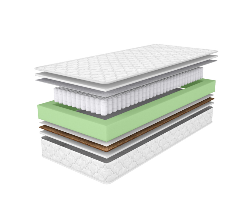 Двусторонний матрас с разными сторонами жесткости на основе независимого пружинного блока.