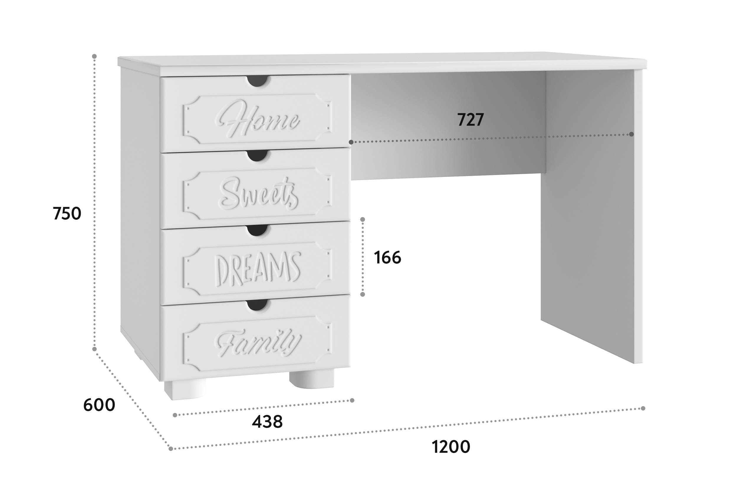 Система мебели "Дримстар" включает в себя отдельные самостоятельные модули, сочетающие в себе функциональность и уникальность дизайна. С базовым набором модулей легко оформить интерьер любого помещения. Все модули можно комбинировать между собой. Фасады украшены надписями, которые придают моделям оригинальный вид. Коллекция "Дримстар" поможет вам в оформлении стильного и современного интерьера. Столешница изготовлена из МДФ толщиной 25 мм. В ящиках используются телескопические направляющие полного выдвижения. Расположение ящиков только с правой стороны.
